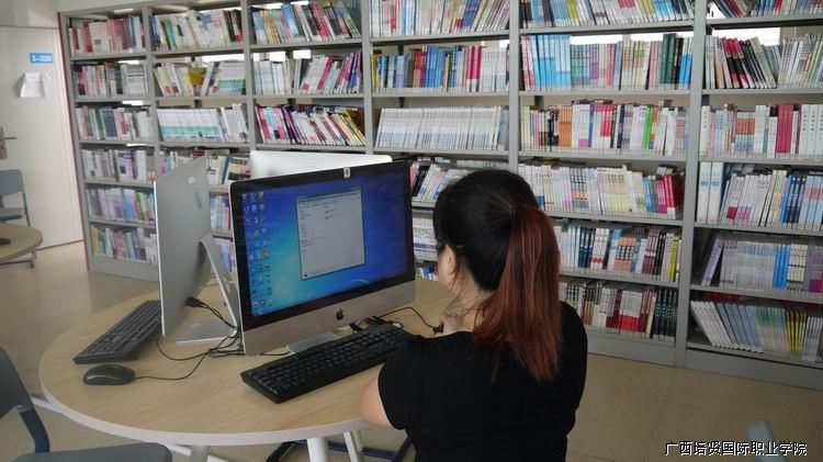 图为何老师检查图书室电脑设备