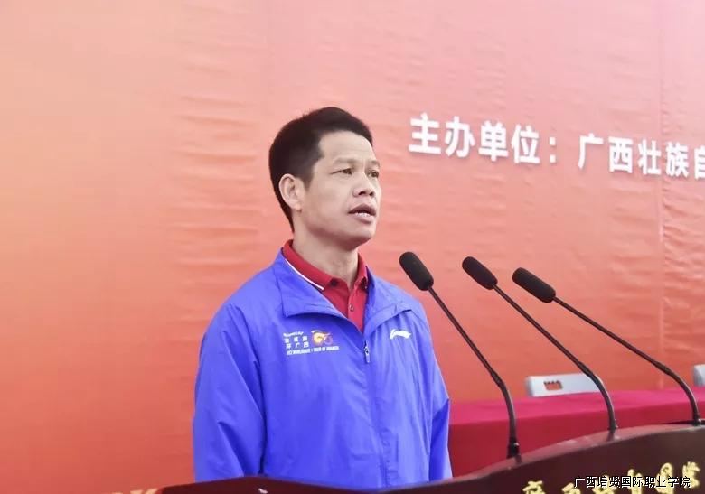 △ 图为广西区体育局青少处蓝桂明调研员宣布开赛