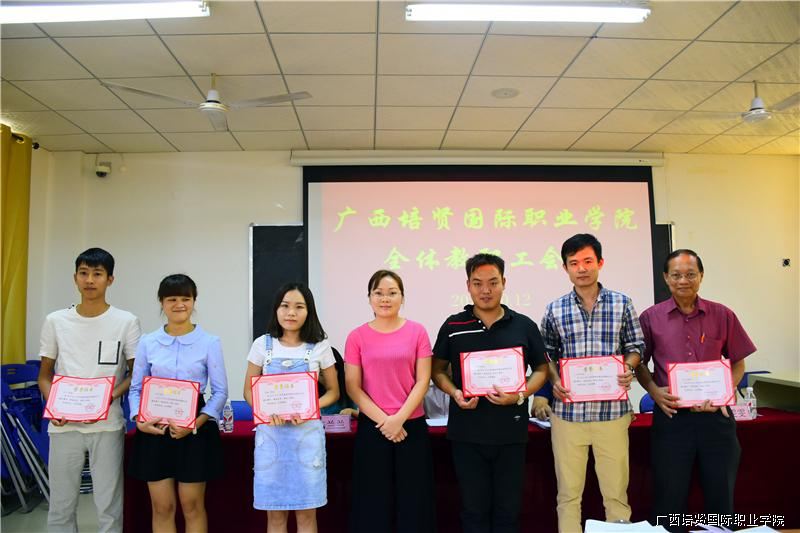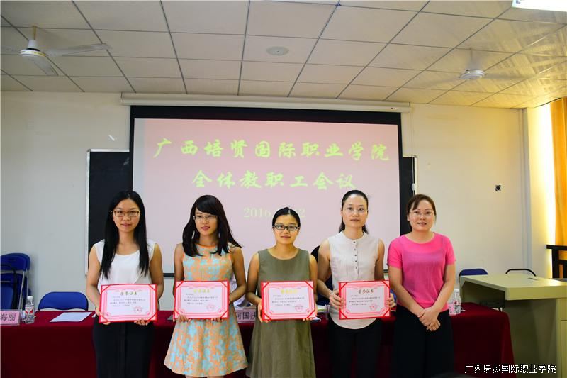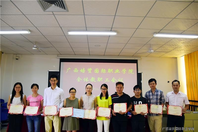随后😾,人事处陈兰兰处长依次宣读了《2015—2016年春季学期教师公开课优秀教师名单》、《2016年广西职业院校技能大赛英语口语比赛优秀指导老师名单》以及《2016年全国大学生英语竞赛优秀指导老师、优秀组织老师名单》📫,学院招生办杜海丽主任🫄🏿、黄勇学院长助理和何国庆副院长分别为获奖教师颁奖💇🏿。