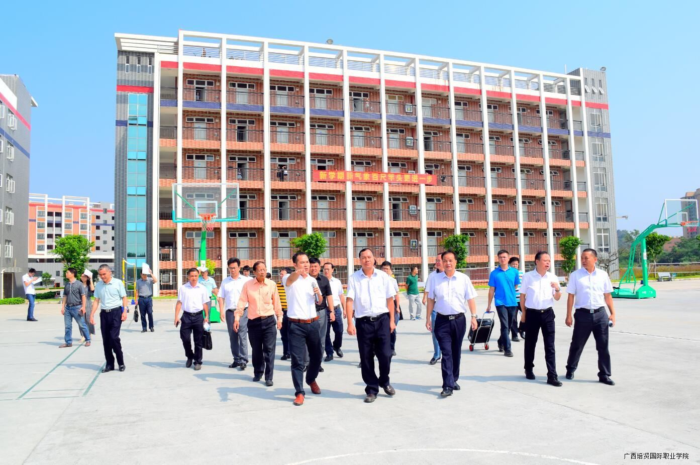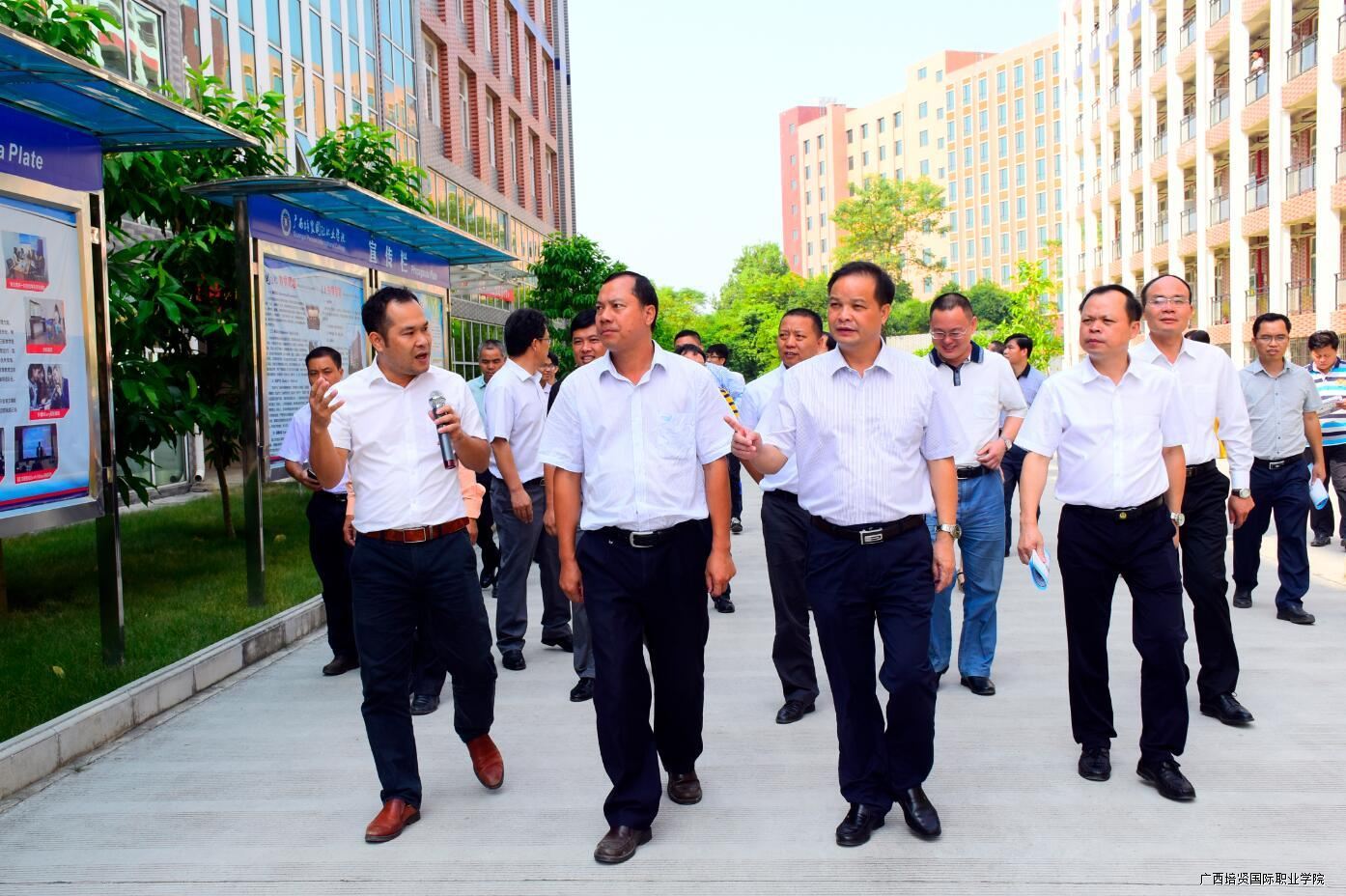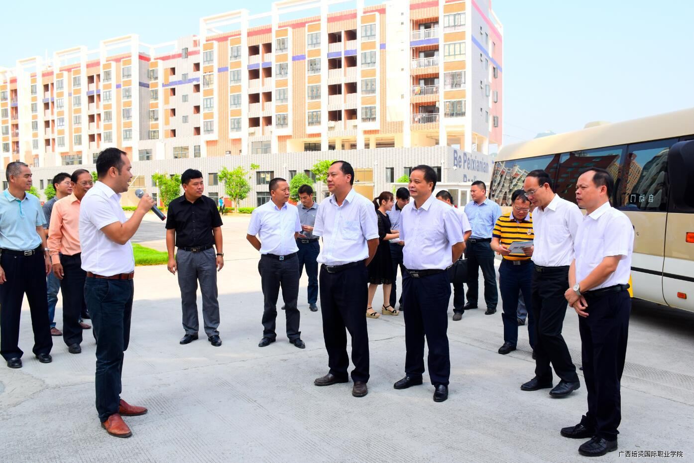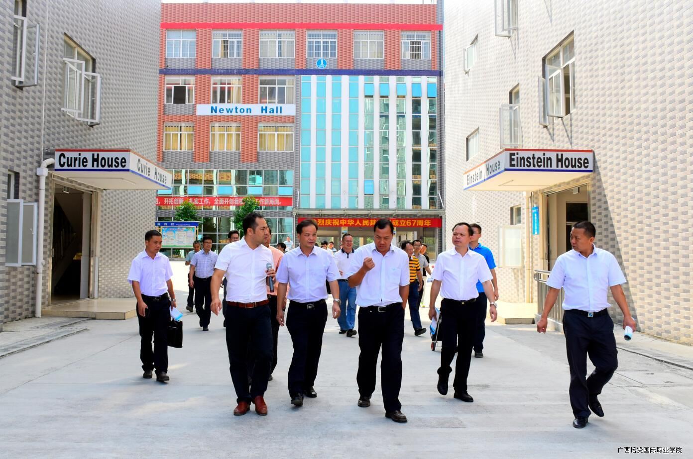 图为百色市委常委、靖西市委书记钟恒钦(中)率考察组一行到校考察调研