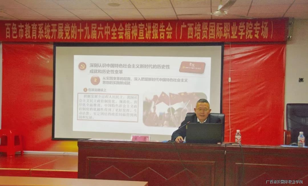 王勇书记首先传达了百色市委教育工委《关于<百色市教育系统开展党的十九届六中全会精神宣讲活动方案>的通知》的工作部署💉,要求学校各党支部各部门认真学习🦩、抓好落实。