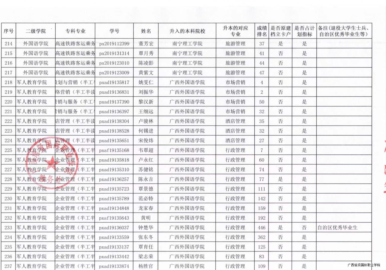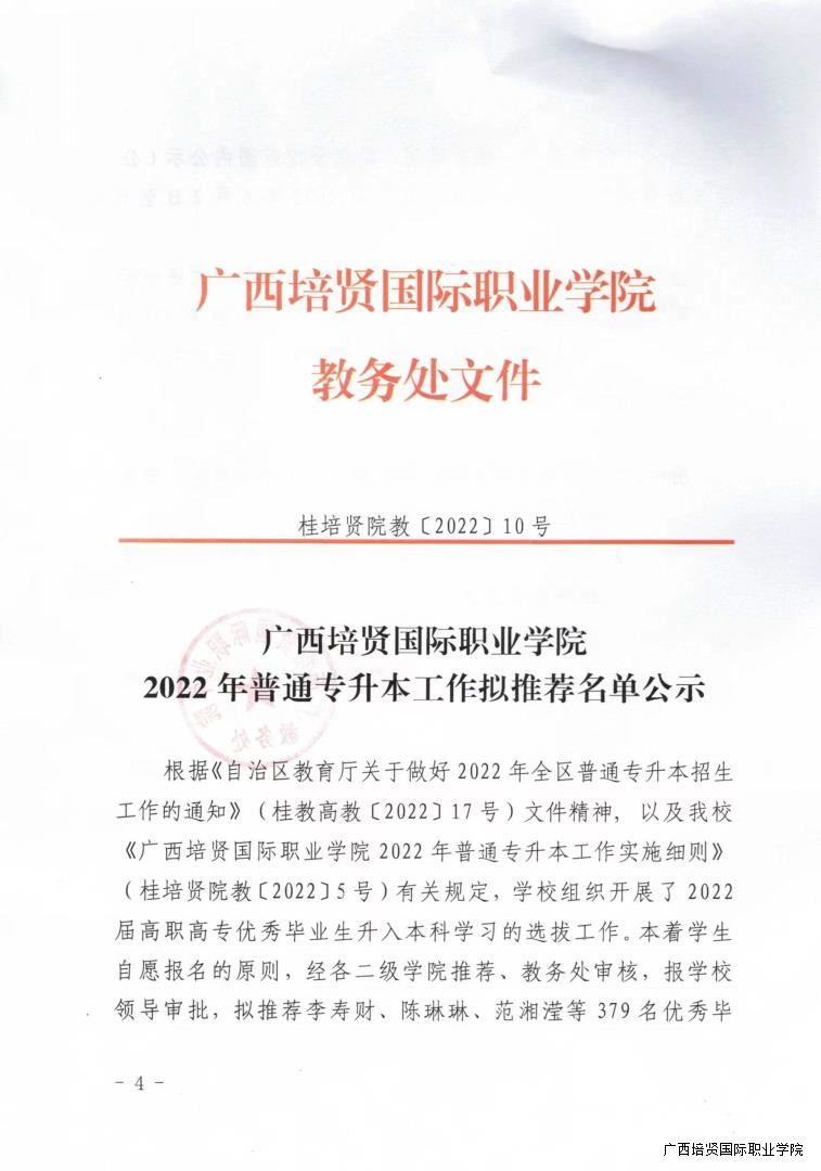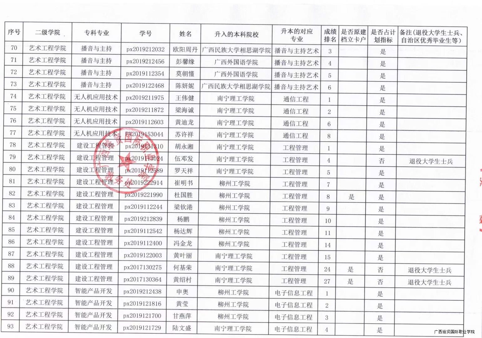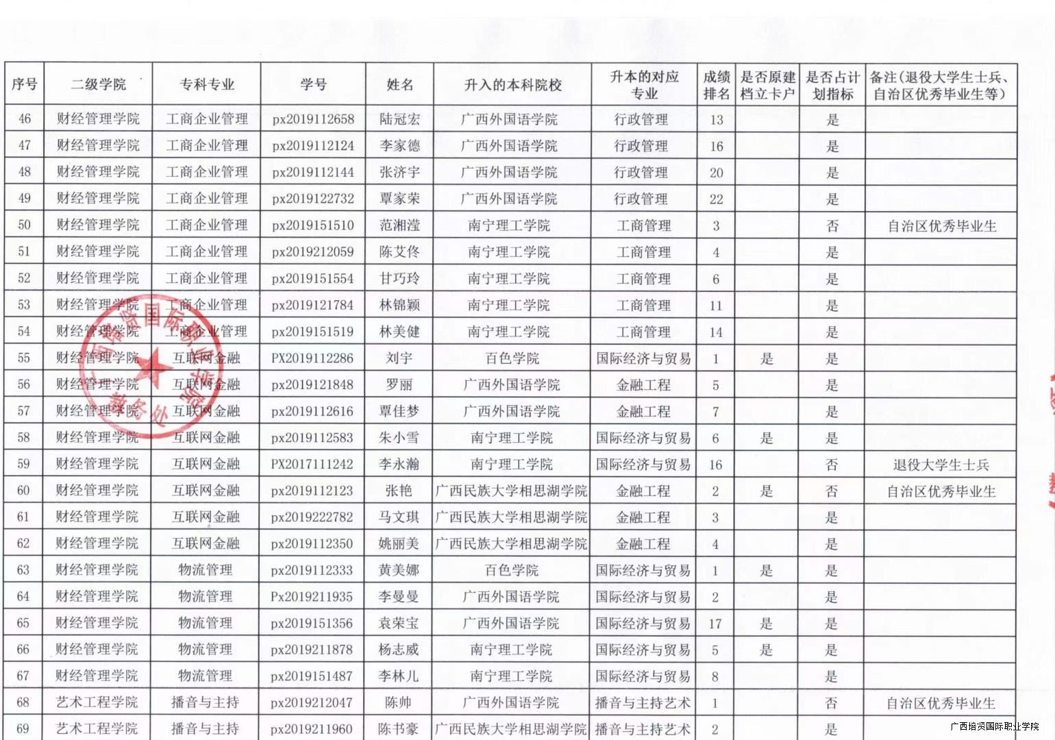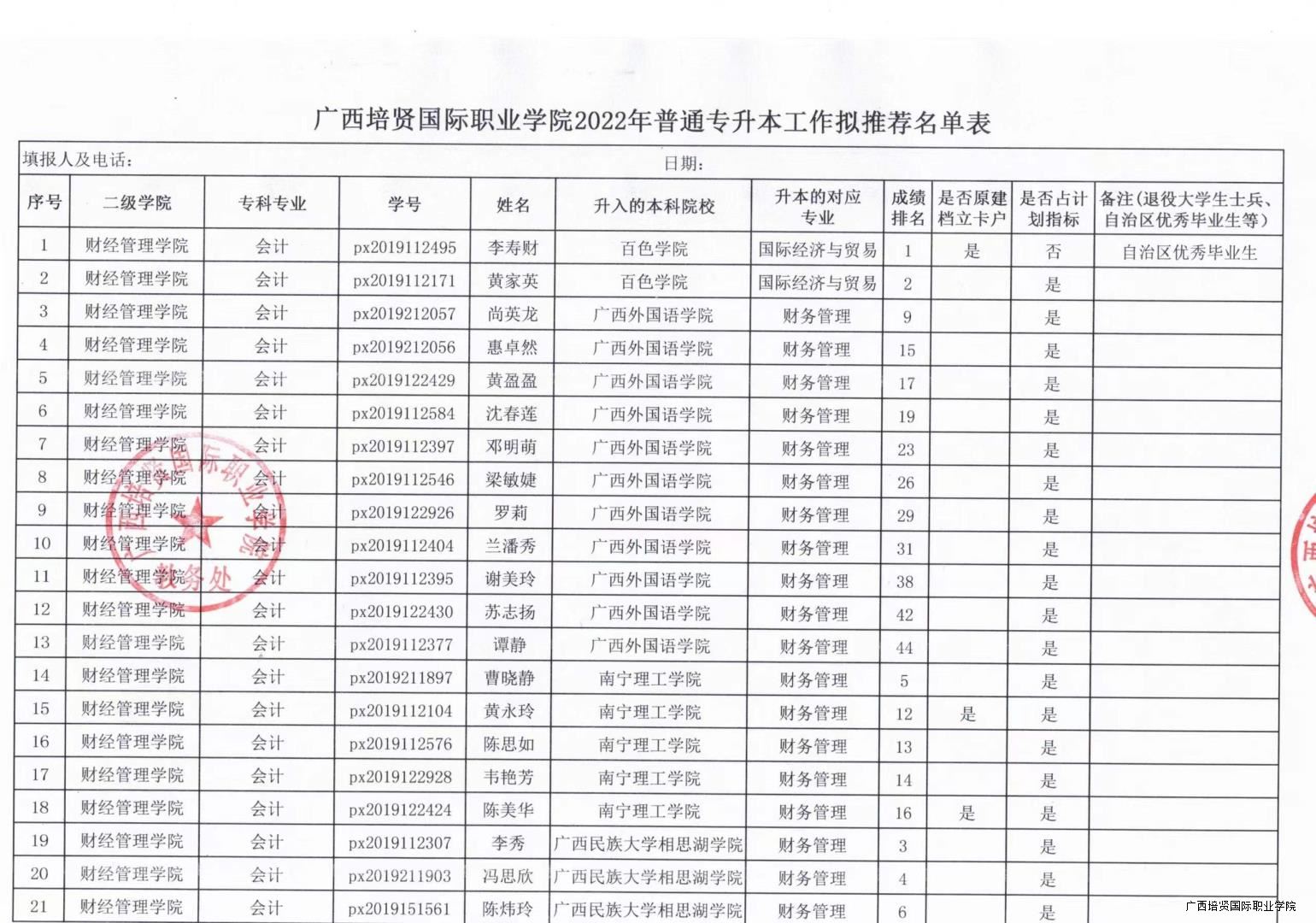 广西彩神国际职业学院2022年普通专升本工作拟推荐名单公示