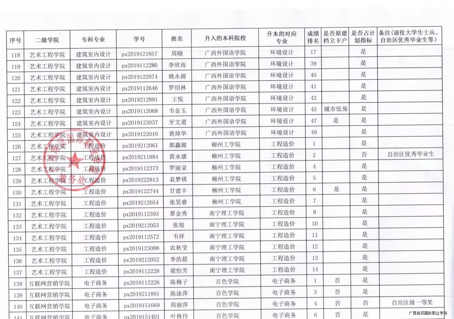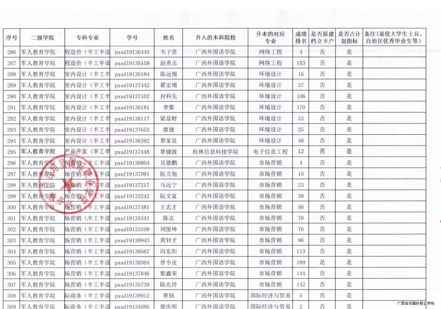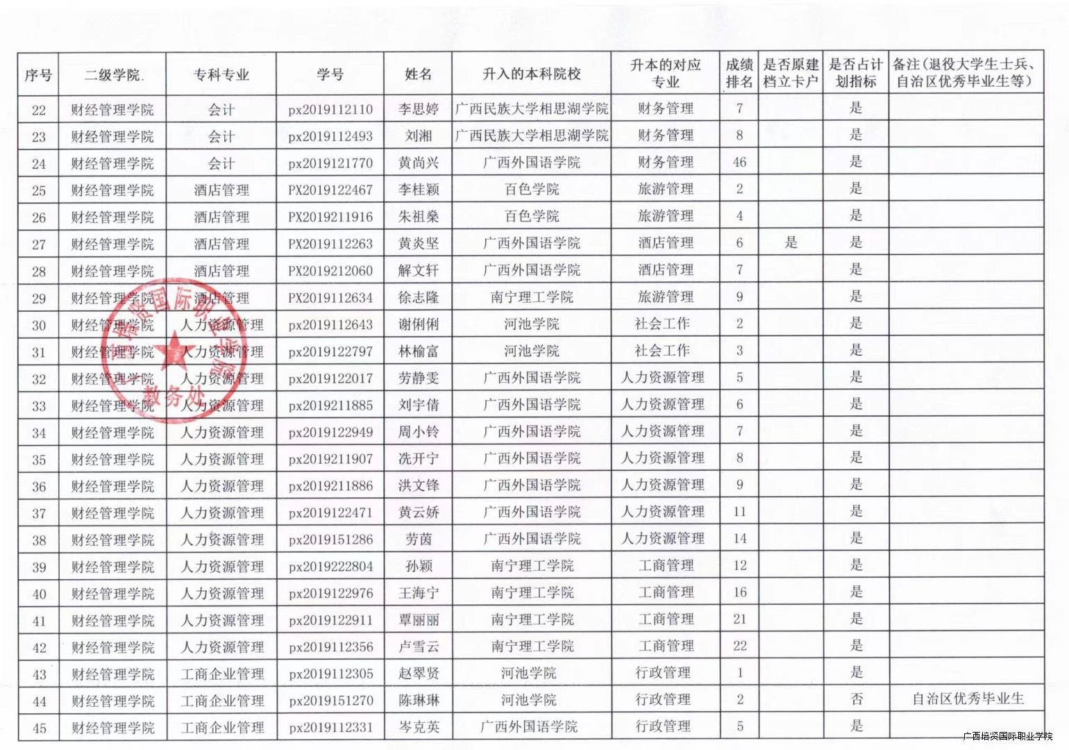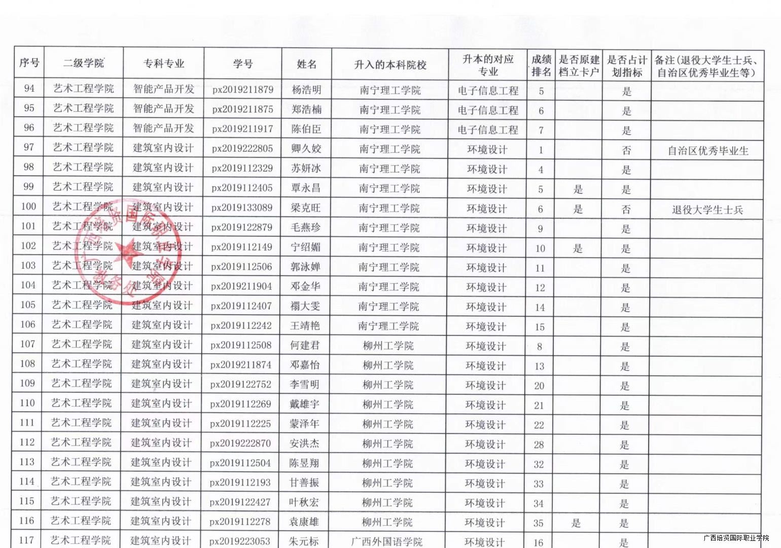 广西彩神国际职业学院2022年普通专升本工作拟推荐名单公示