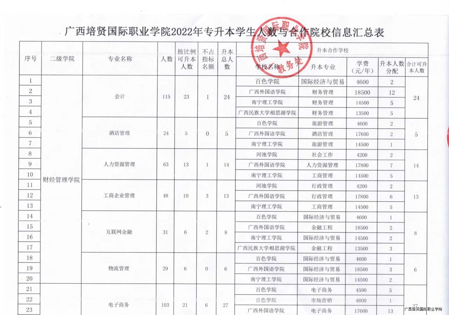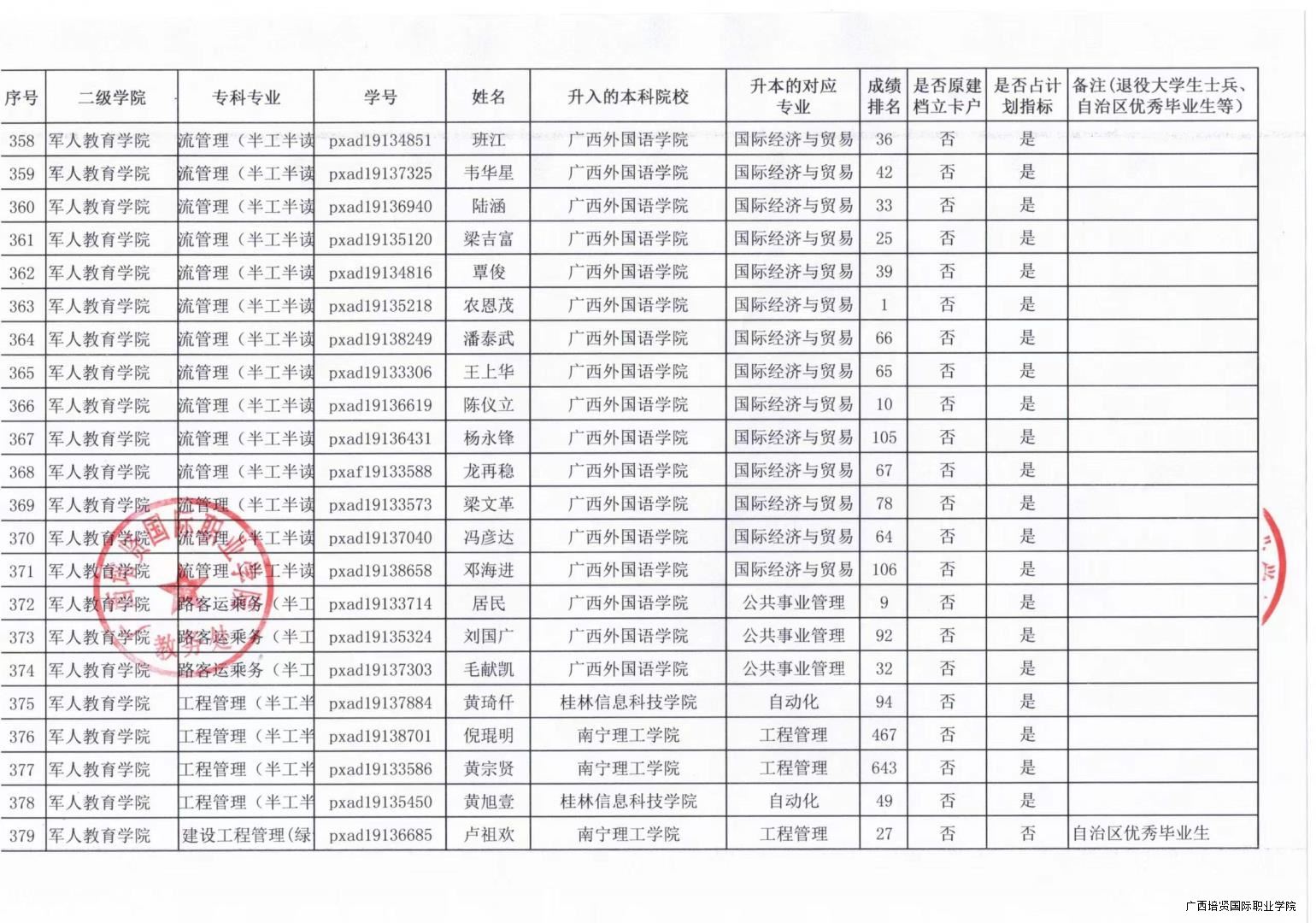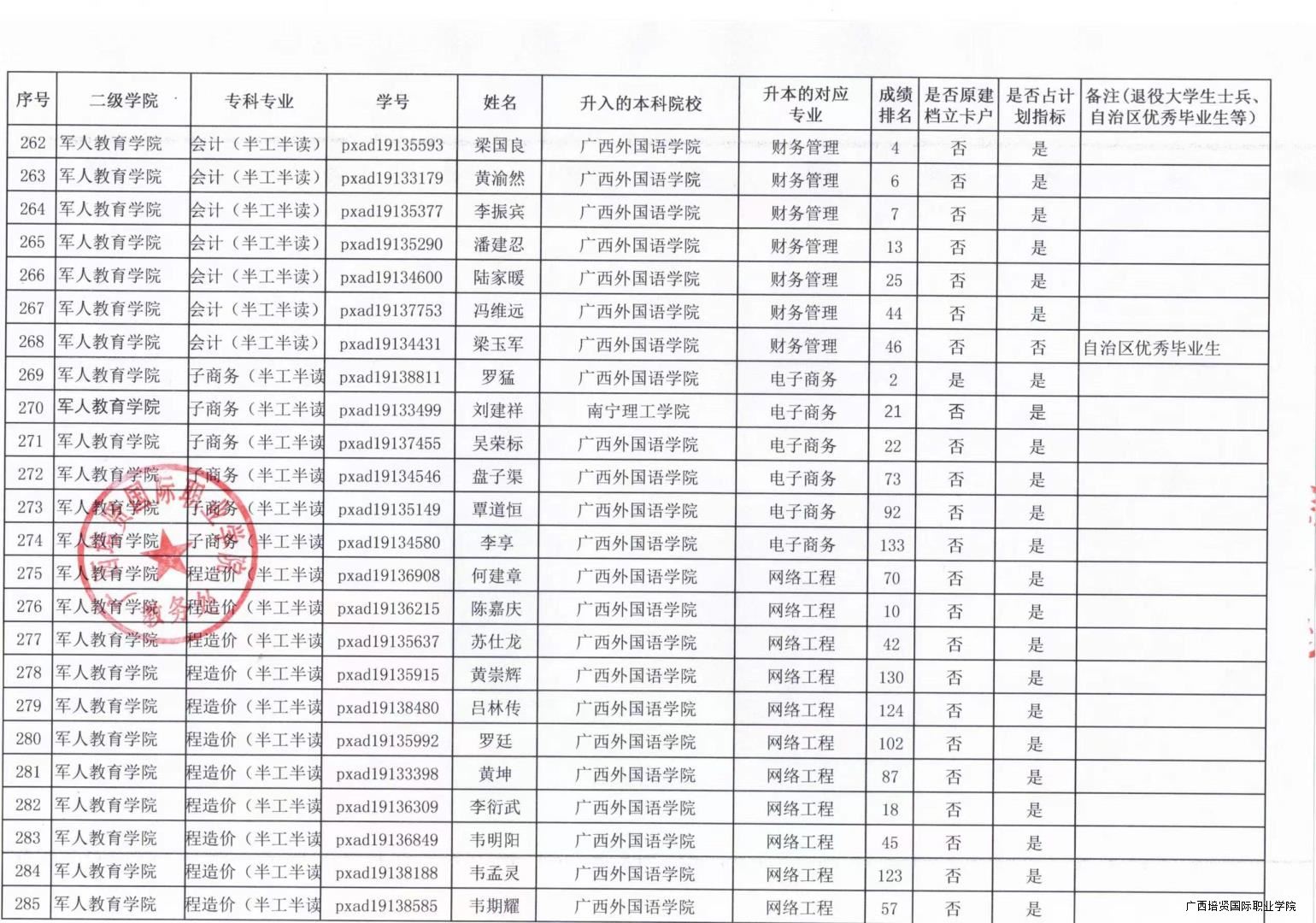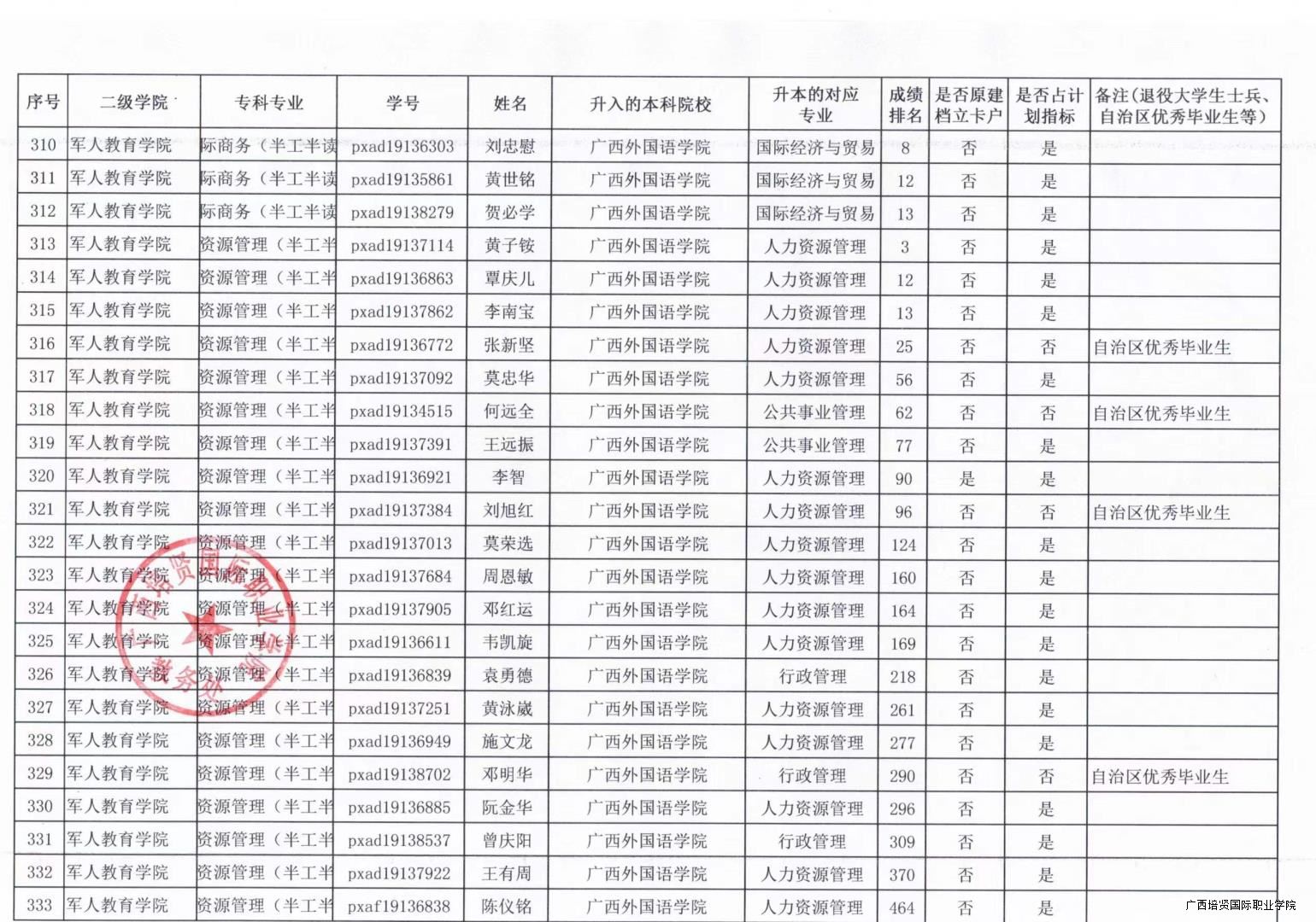 广西彩神国际职业学院2022年普通专升本工作拟推荐名单公示