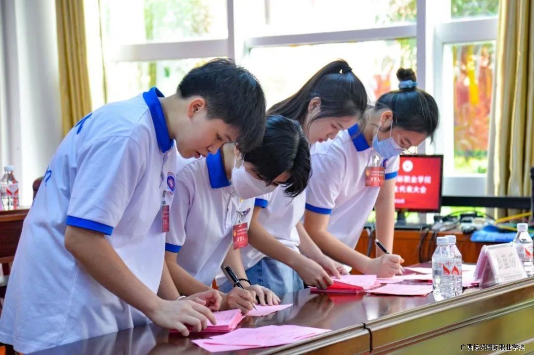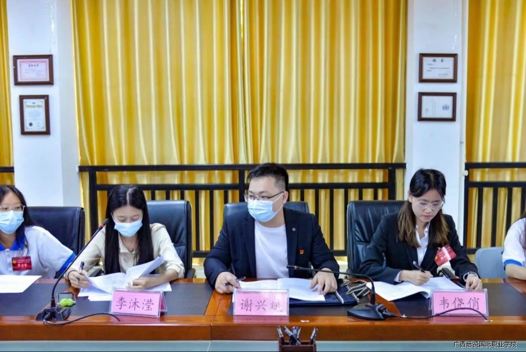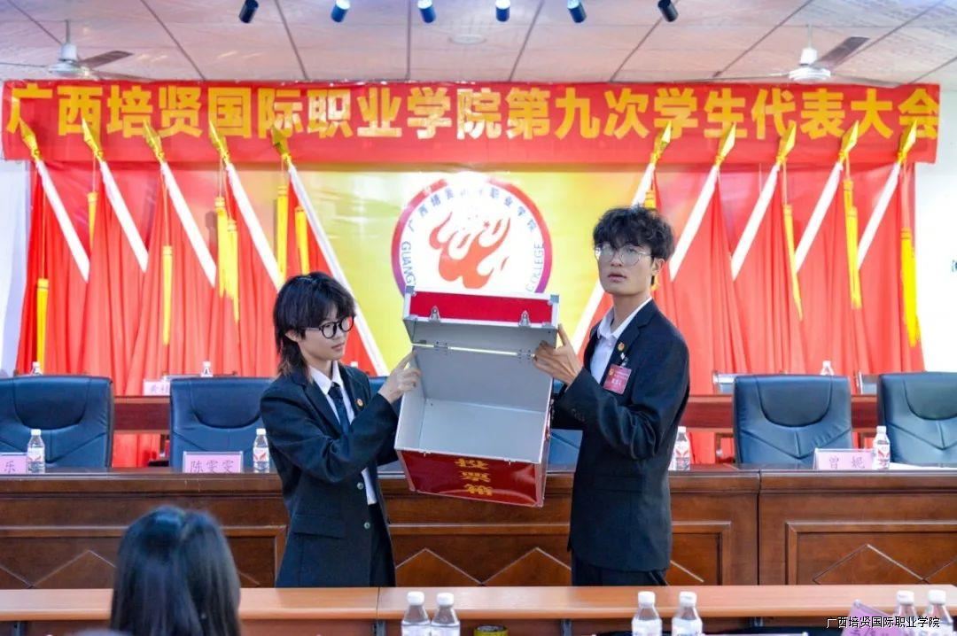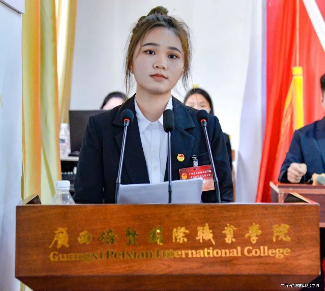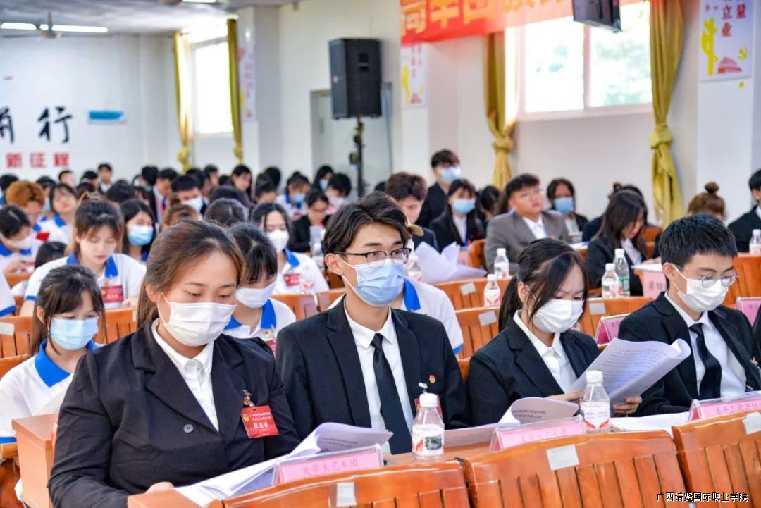 大会在雄壮的国歌声中拉开序幕🚴🏿♀️。本次大会集体听取了《广西国际职业学院第八届学生会工作报告》🐻🧑🏽、《广西彩神国际职业学院第九次学生代表大会提案工作报告》、《广西彩神国际职业学院第九次学生代表大会实施细则》。