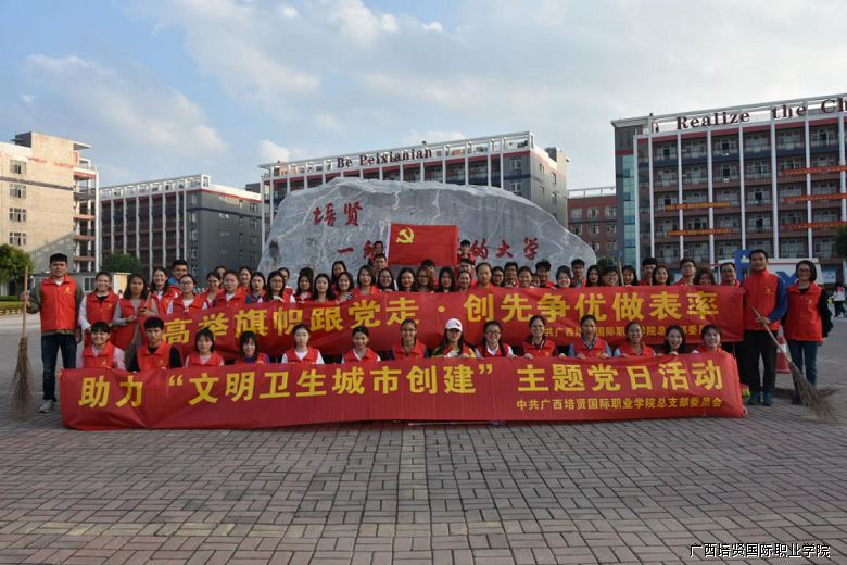 中共广西彩神国际职业学院总支部委员会为了加强对党员的教育,牢固树立党员的服务意识🧔🏻‍♂️⛰,于2018年12月5日🕜,组织60余入党积极分子和党员志愿者开展“助力文明卫生城市创建”主题党日活动。我院全体党员和积极分子积极响应此次活动。