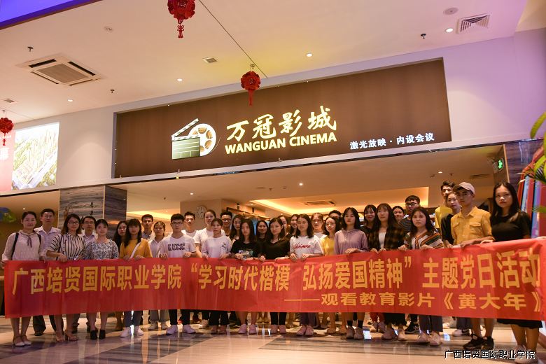 2019年4月19日19:30我校党总支为贯彻落实习近平总书记对黄大年同志先进事迹重要指示精神,组织我校师生党员群众代表前往平果县万冠国际电影院观看教育爱国影片——《黄大年》。
