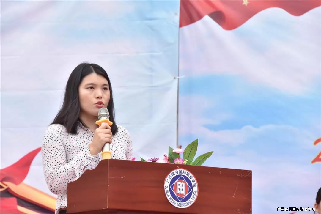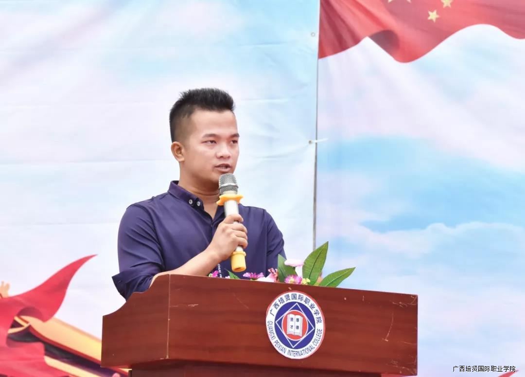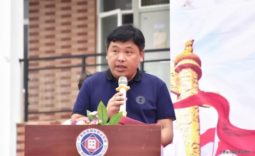 陆宇秋老师宣读平果县批准我院学生入伍文件,并祝愿我院入伍的19名同学刻苦学习,早日建功立业,捷报频传。