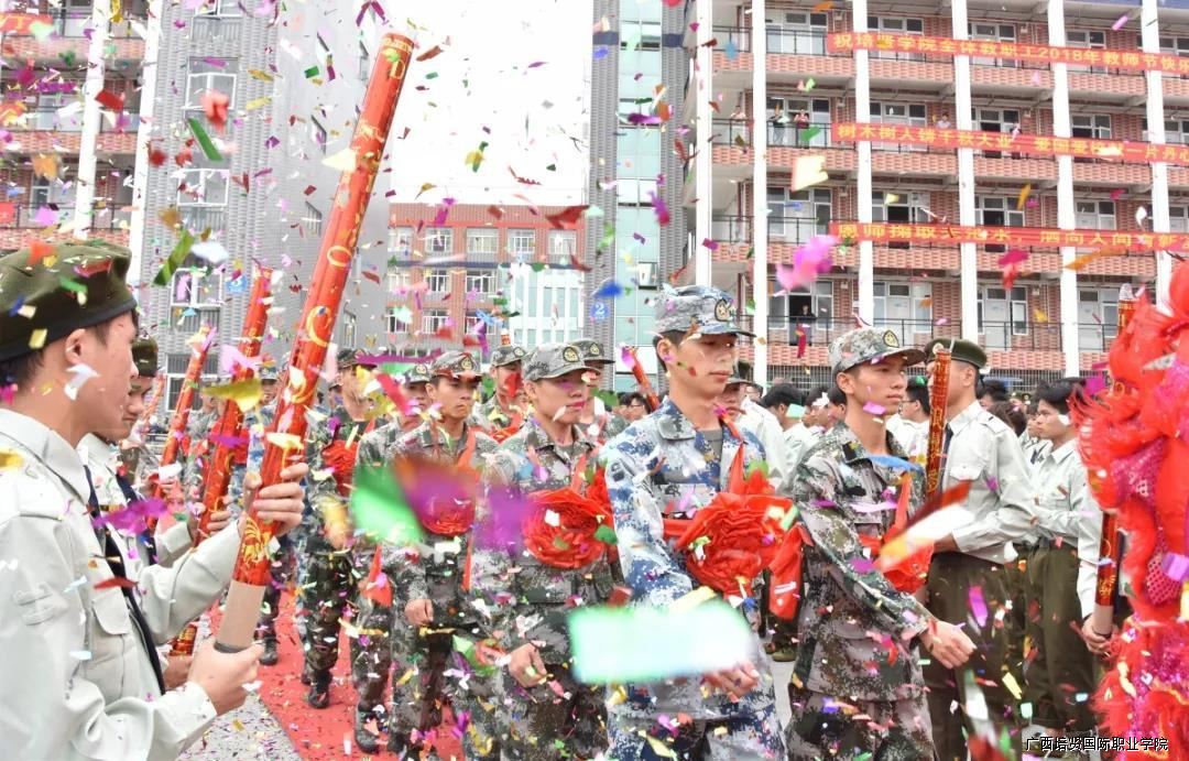 2018年9月10日上午,我院为今年应征入伍的19名新兵同志举行隆重的欢送仪式🧑🎤。平果县武装部部长朱留田,靖西市人武部副部长樊选华💑,平果大学园区管理委员会副主任罗永林,学院副院长黄勇学♐️,学院副院长于灏洋、副院长陆秋利等领导出席本次欢送仪式🪘。