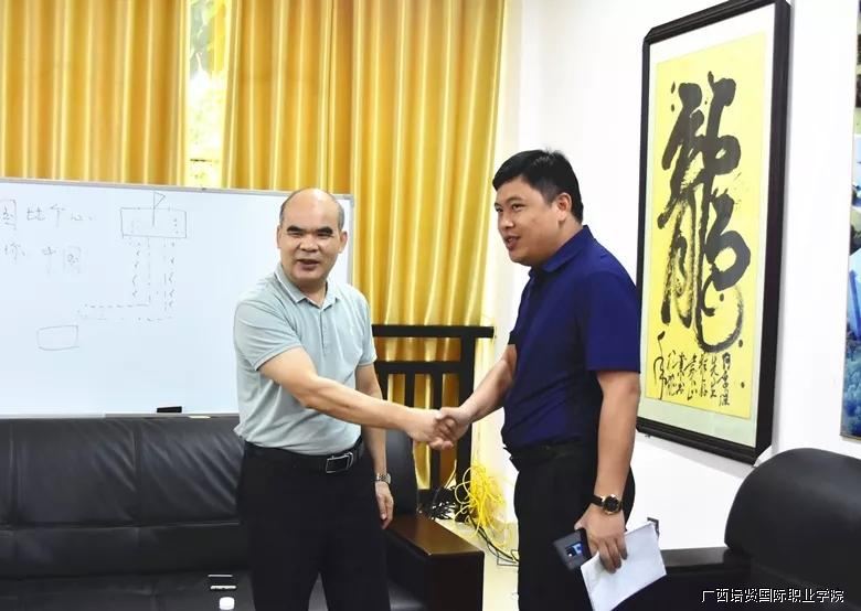 2019年10月16日🚟🚪,广西工商职业技术学院党委书记覃武云等一行3人到我校参观🤹♂️,并交流职业教育工作经验👨🏻🦲。我校校长林宁👆🏽、党总支部书记、督导专员谭波、副校长黄勇学、于灏洋、李锡武等领导热情接待。座谈会由黄勇学副校长主持。