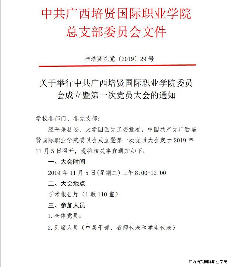 1. 关于举行中共广西彩神国际职业学院委员会成立暨第一次党员大会的通知