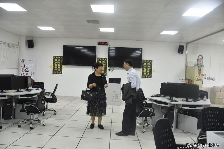 △图为谭波书记与蒋百平部长在企业认知和会计文化展厅多功能特色实训室里交流
