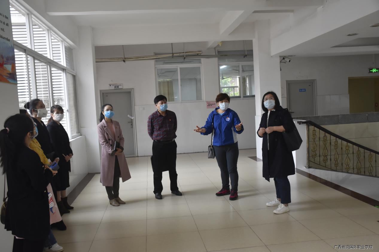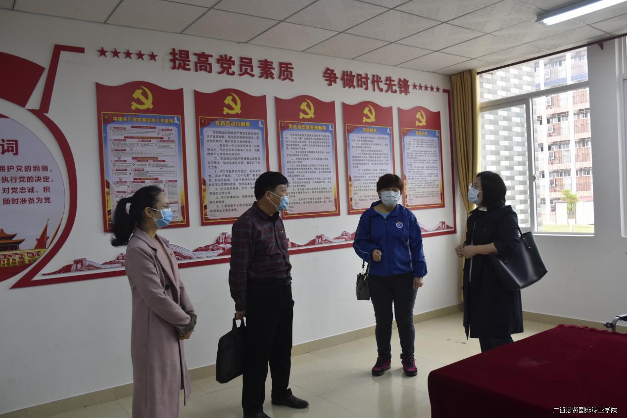 2020410日上午,平果县两新组织党工委办公室主任黄茜茜来到我校检查指导党建工作,我校督导专员、党委书记谭波、党委办公室主任🙂、组织部部长郭玉针、大学园区党工委书记杨敏捷🛕💄、大学园区党工委专职副书记黄华婷陪同检查。