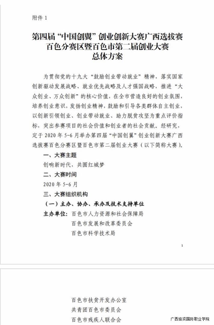 第四届“中国创翼”创业创新大赛广西选拔赛百色分赛区百色市第二届创业大赛总体方案