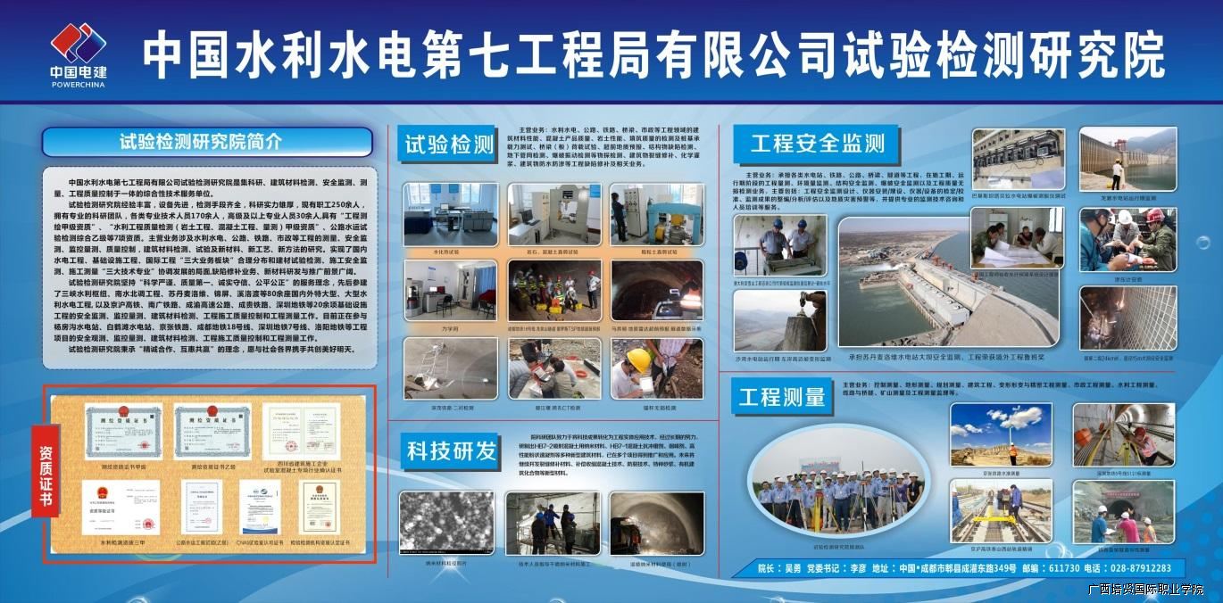 中国水利水电第七工程局有限公司试验检测研究院,具有工程测量甲级资质;水利工程质量检测岩土工程、混凝土工程👩🏻⚕️、量测专业甲级资质🧘♀️;四川省建筑施工企业试验室壹级资质等各类资质🔨。主要从事测绘、试验检测、工程监测等业务🏄🏿♀️。