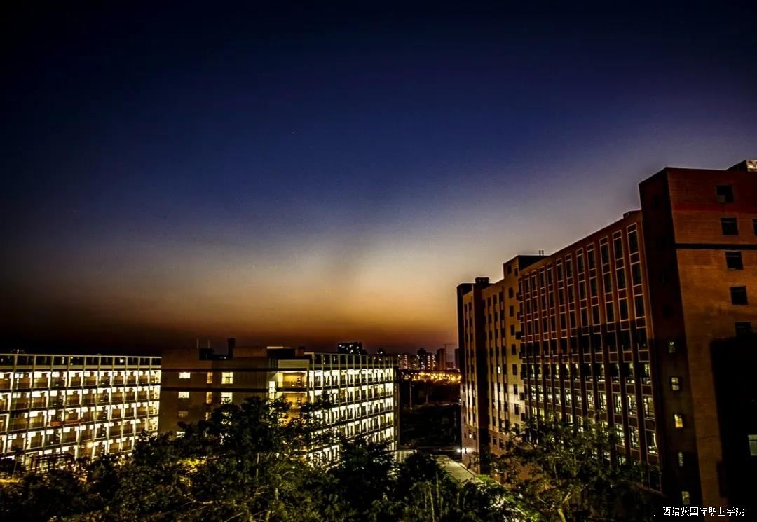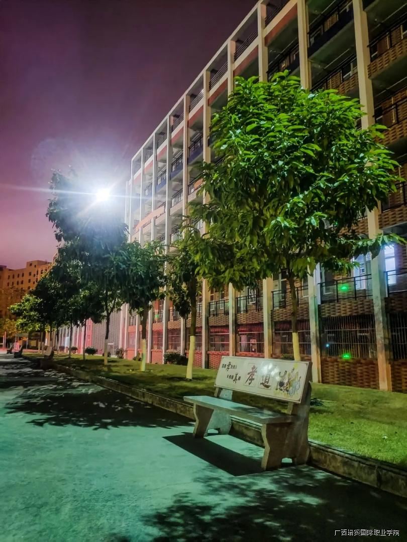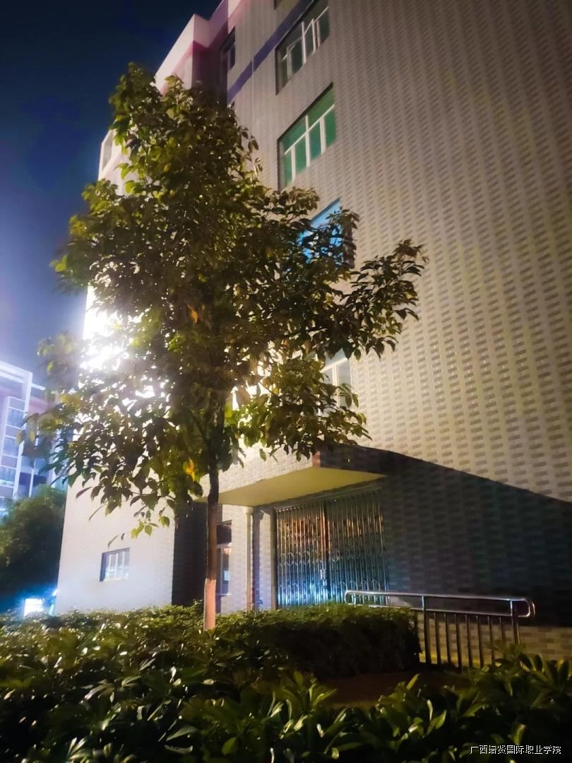 望向身后的宿舍楼沉浸在光晕之中