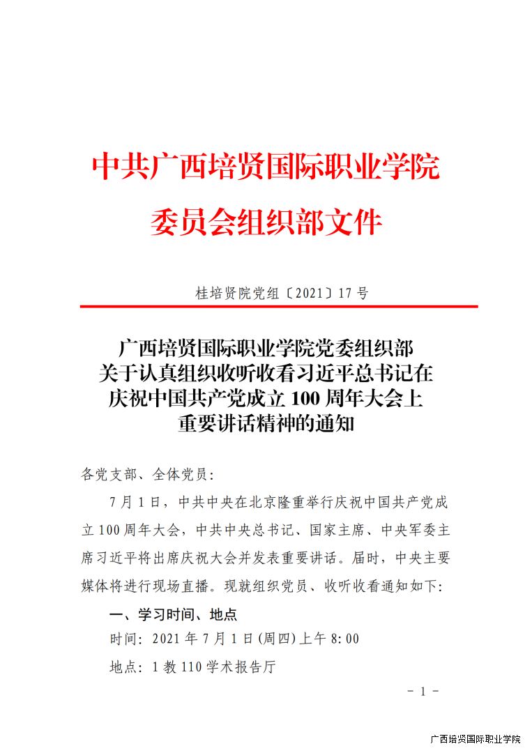 关于认真组织收听收看习近平总书记在庆祝中国共产党成立100周年大会上重要讲话精神的通知
