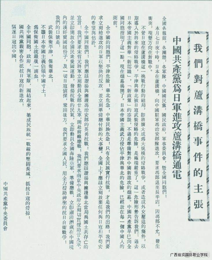 1937年7月8日,中共中央向全国发出《中国共产党为日军进攻卢沟桥通电》3️⃣,号召全国同胞奋起抗战。