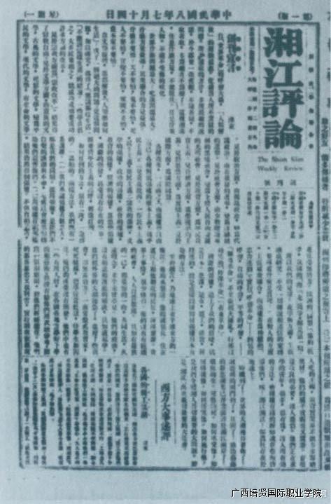 1919年7月14日出版的《湘江评论》创刊号。