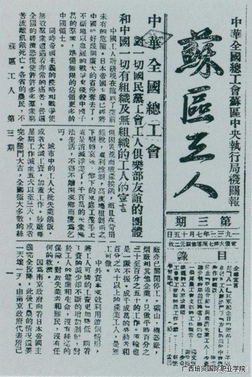 1933年7月15日,刘少奇在《苏区工人》报第三期上发表《停止“强迫介绍”与救济失业工人》和《模范的工人要求纲领》两篇文章。
