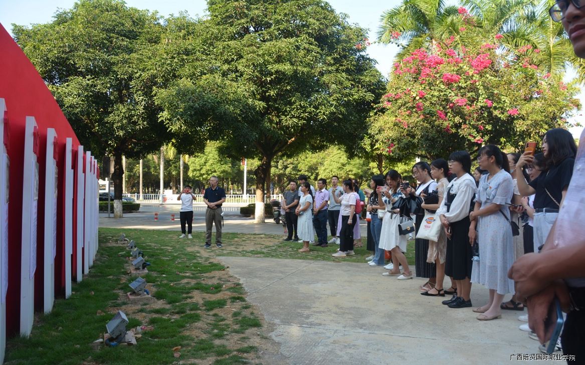 △红色文化长廊集体拍照留念 △ 平果市脱贫攻坚教育基地留影