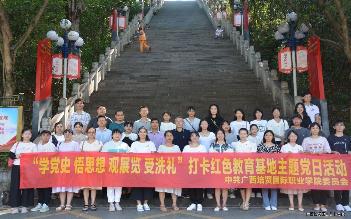 为深入学习习近平总书记在庆祝中国共产党成立100周年大会上的重要讲话精神,推动党史学习教育走深走实🙇♀️。2021年9月29日我校党委书记🏄🏽、督导专员王勇带队组织全体教师党员前往平果市脱贫攻坚教育基地和邓公山红色教育基地开展“学党史 悟思想 观展览 受洗礼”打卡红色教育基地主题党日活动🔊。