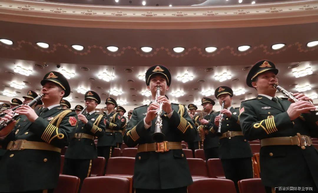 3月10日🌶,中国人民政治协商会议第十三届全国委员会第五次会议在北京人民大会堂举行闭幕会🩷。这是军乐团在演奏⛹️‍♀️。新华社记者 卢烨 摄