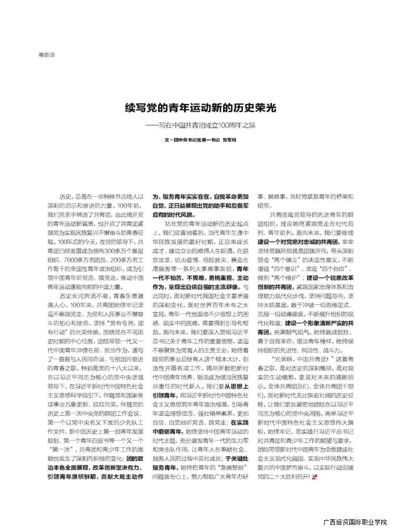 续写党的青年运动新的历史荣光——写在中国共青团成立100周年之际