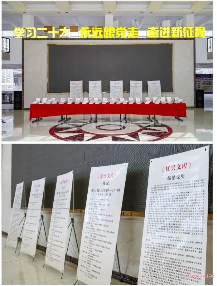 修史立典,存史启智,以文化人➔。近期🍳,学校图书馆结合教务处开展的深入学习贯彻习近平总书记为《复兴文库》所作《序言》重要精神活动,将大型历史文献丛书《复兴文库》入藏学校图书馆,并在一教大厅进行《复兴文库》丛书展✳️,深受广大师生喜爱👨🏿🌾。
