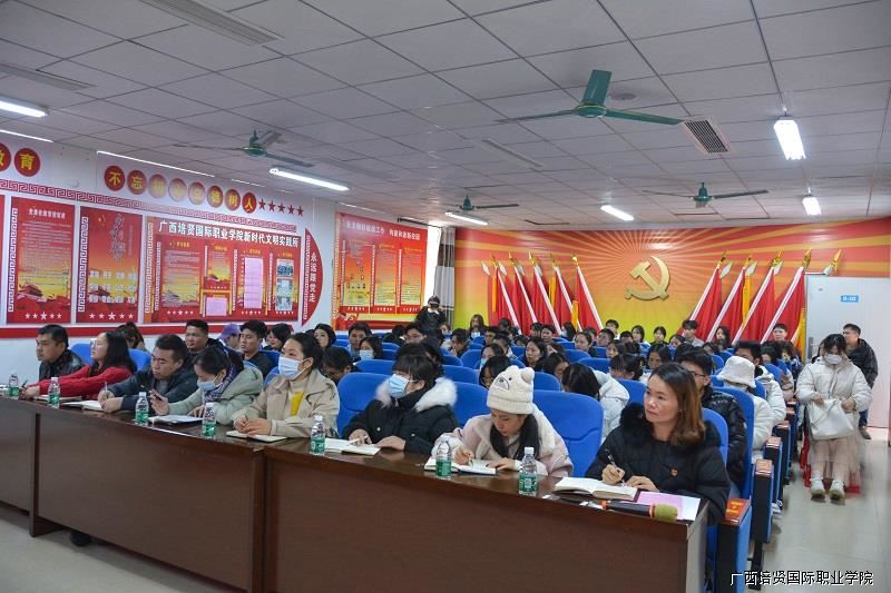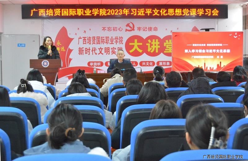 ▲广西彩神国际职业学院2023习近平文化思想党课学习会现场