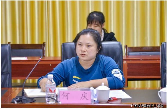 ▲教务处副处长何庆汇报学校开展职业教育国家教学基本文件落实自检自查情况