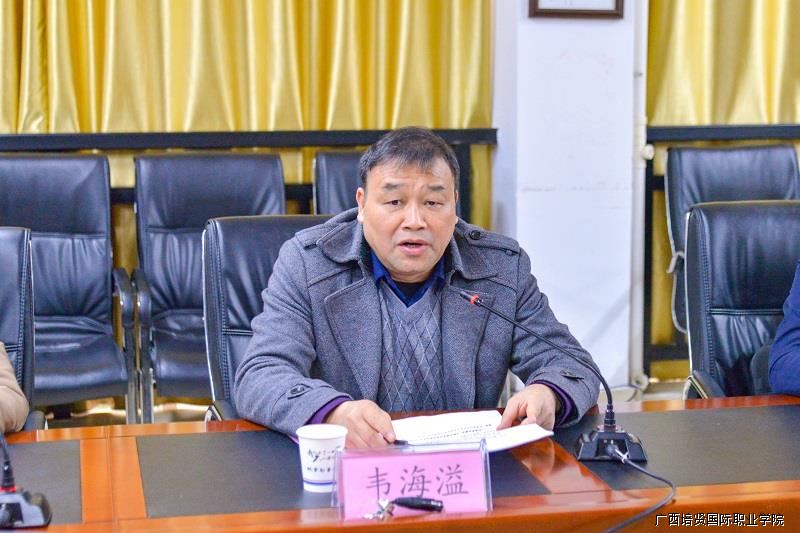 ▲百色市委教育工委委员、市教育局党组成员、副局长韦海溢讲话