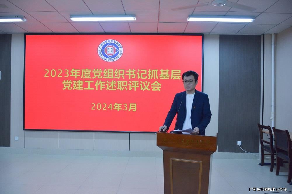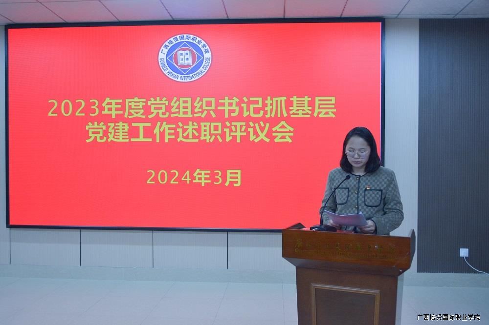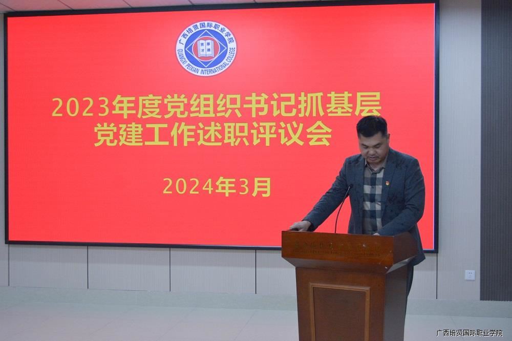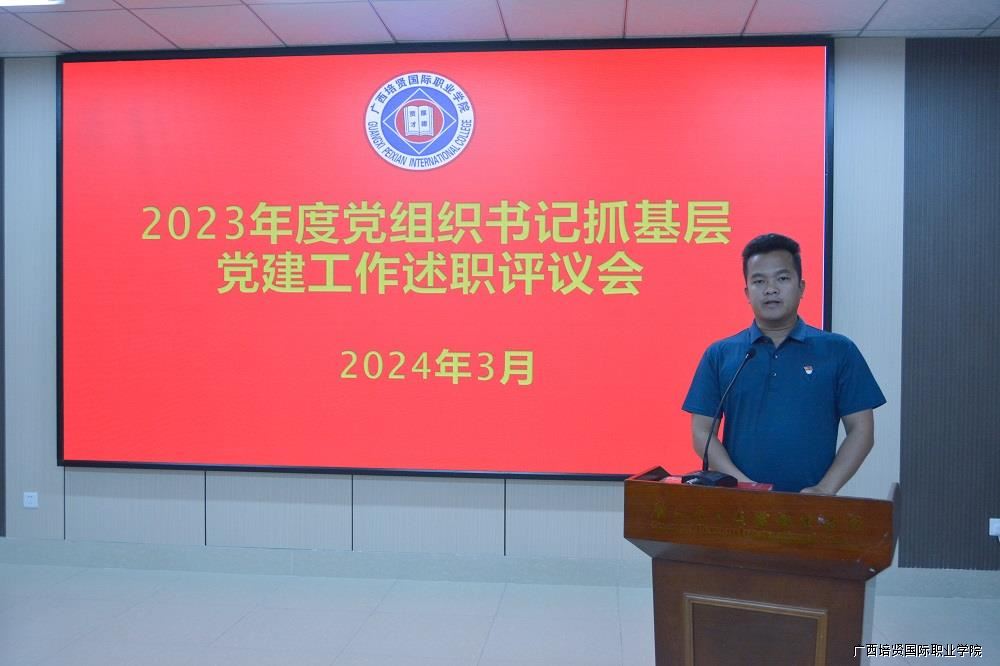 为深入学习贯彻党的二十大精神和习近平总书记考察广西重要讲话精神,切实发挥基层党支部战斗堡垒作用,以高质量党建引领推动学校教育事业高质量发展,学校党委于322日下午,在一教105召开了2023年度党组织书记抓基层党建工作述职评议会,学校党委委员、各党支部书记以及教师党员代表参加会议。学校党委书记🚙、政府督导专员罗必本主持。