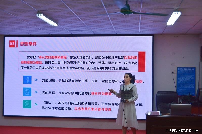 为深入学习贯彻习近平新时代中国特色社会主义思想和《中国共产党章程》,强化入党积极分子对党的认识,广西彩神国际职业学院党委于5月9日—12日举办2024年第一期入党积极分子培训班🪨,参加本次培训学员共计200余人。本次开班仪式采用主分会场的方式举办,学校党委副书记🤞🏼、副校长许家瑞,党委委员❄️、副校长黄吉萍,党委委员、党委组织部部长郭玉针🔈👩🦼➡️,党委委员、党委宣传部部长潘兰斯出席此次开班仪式👨🏼💻,郭玉针同志主持开班仪式🫶🏽。