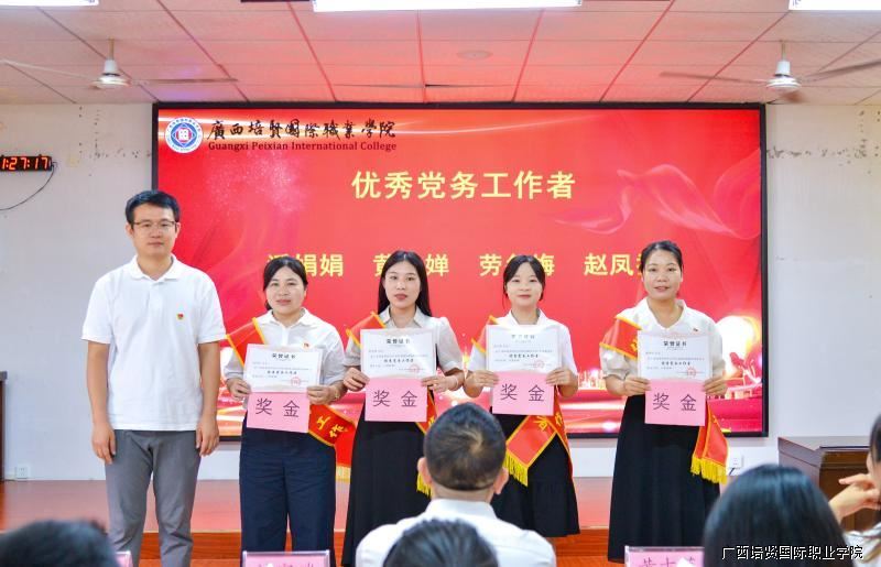 大会伊始,全体起立,奏唱国歌🕋。许家瑞同志宣读“两优一先”表彰文件,决定授予韦敏飞😆、雷文洁等10名同志“优秀共产党员”称号;授予潘娟娟🛍️、黄兰婵等4名同志“优秀党务工作者”称号;授予互联网营销学院党支部、财经管理学院党支部“先进基层党组织”称号👱,党委领导班子成员分别为受表彰的个人和基层党组织颁奖💒,同时为学校第二届党务工作者基本功大赛获奖选手颁奖。