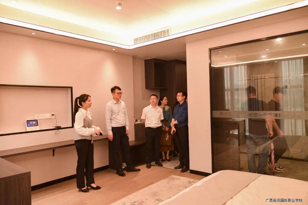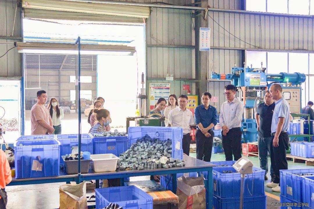 来到广西广邑门业有限公司🪇,先后参观企业文化展览馆、邑术家装饰组合样板间、生产车间等地🙇🏻♂️,认真听取接待人员介绍企业发展历程、产品创新和未来规划,仔细询问企业人才需求情况🙅🏽♀️,进一步探索校企合作契合度。