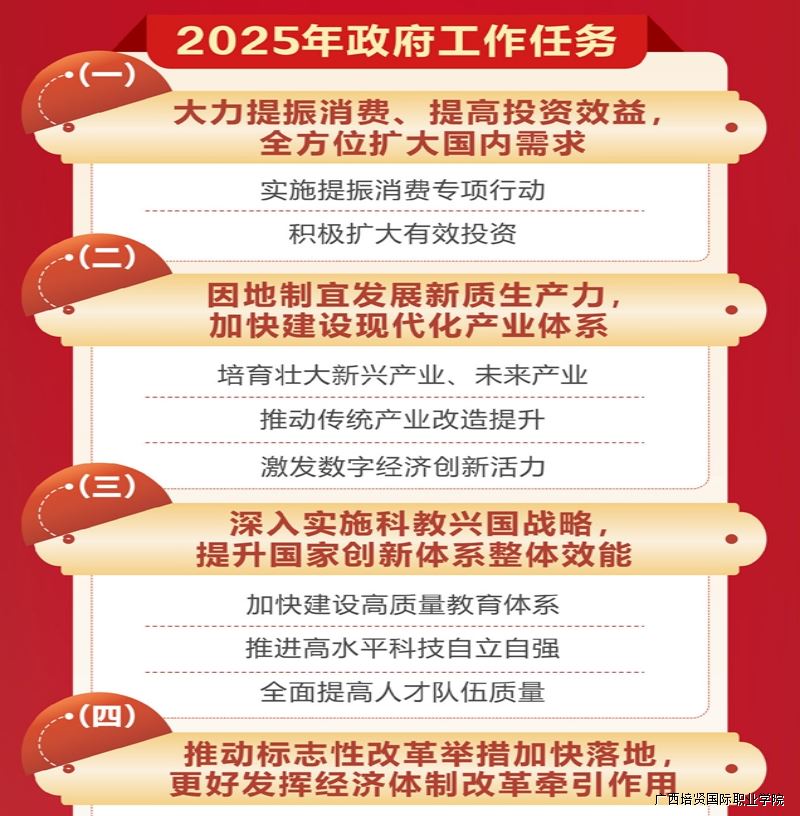 《2025年国务院政府工作报告》是中国国务院总理李强代表国务院向十四届全国人大三次会议作的政府工作报告。