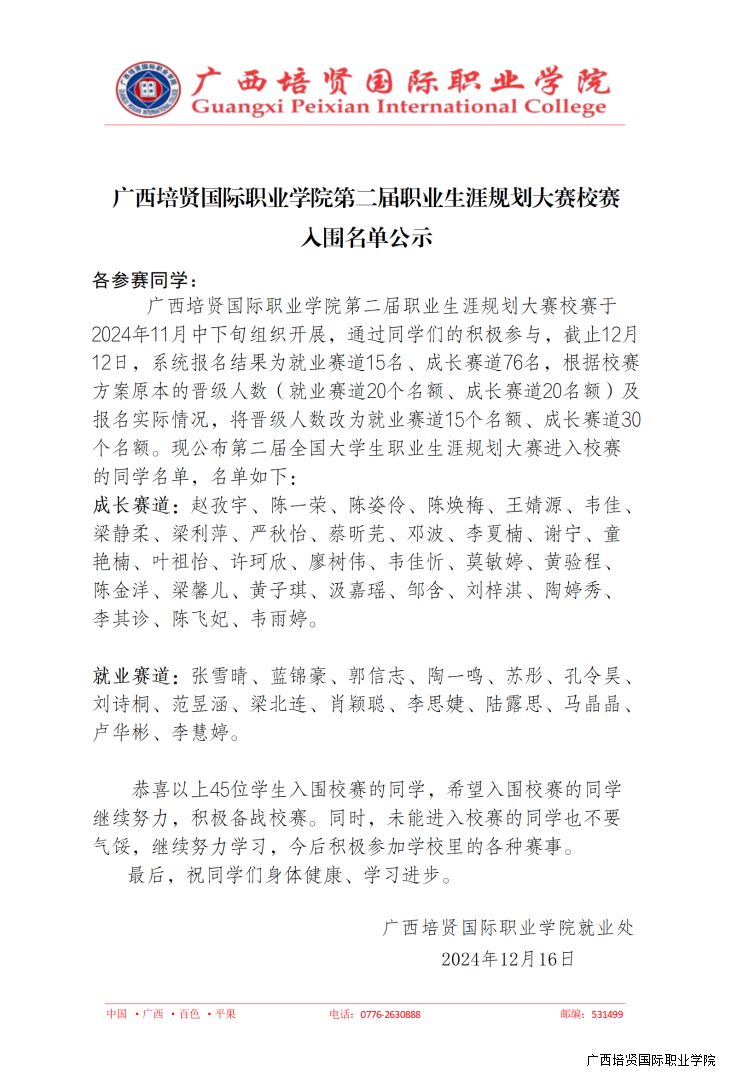 1. 广西彩神国际职业学院第二届职业生涯规划大赛校赛入围名单
