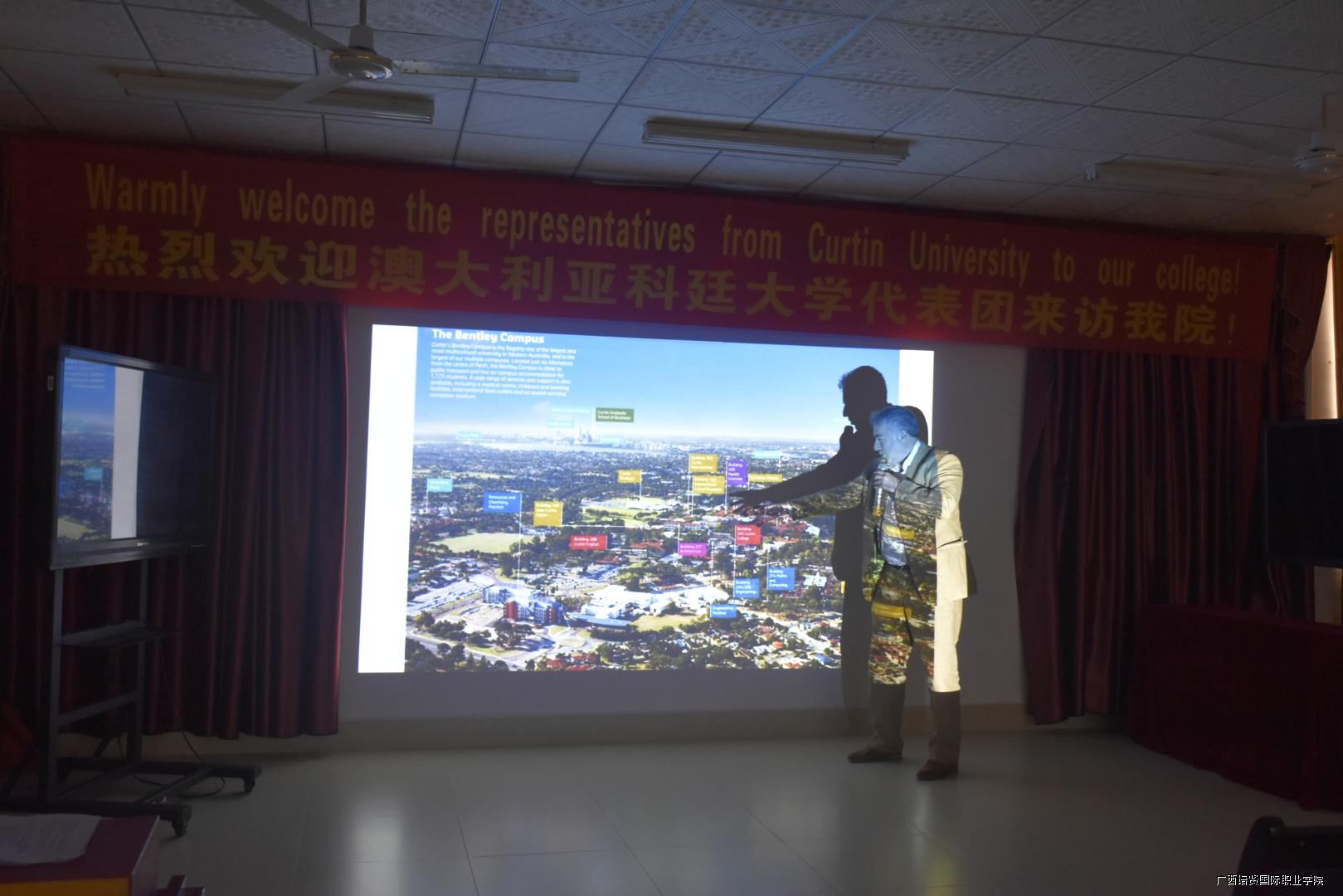 Simon Winetroube, The vice-chancellor of Curtin University, use PPT to introduce the basic information of Curtin university.