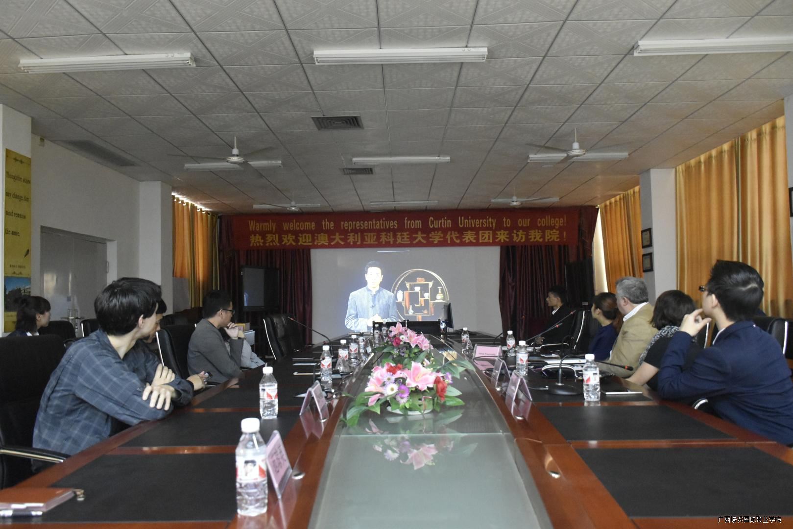 November 30, 2017, morning , Simon Winetroube, the vice-chancellor , Ruth Ong, International Director, Iby Moh, Operations Manager, Joseph Tan, International Marketing Manager, they are visiting Guangxi Peixian International college as the representatives from Curtin university