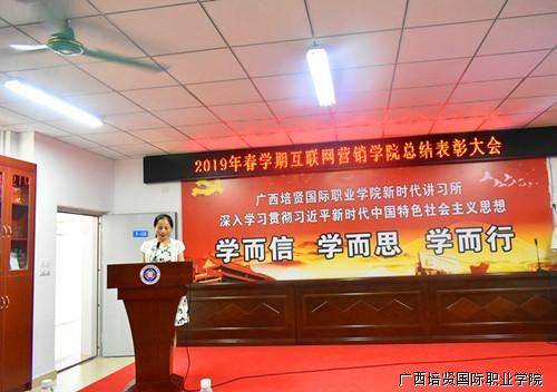 在栀子花开的季节里🧓👦🏽,在盛夏炽热的阳光下,广西彩神国际职业学院互联网营销学院于2019年7月3日下午在2教122讲习所举行互联网营销学院电子商务专业学习兴趣团体成立暨2019年春学期表彰大会。分院副院长黄吉萍及分院全体老师出席并参加大会。