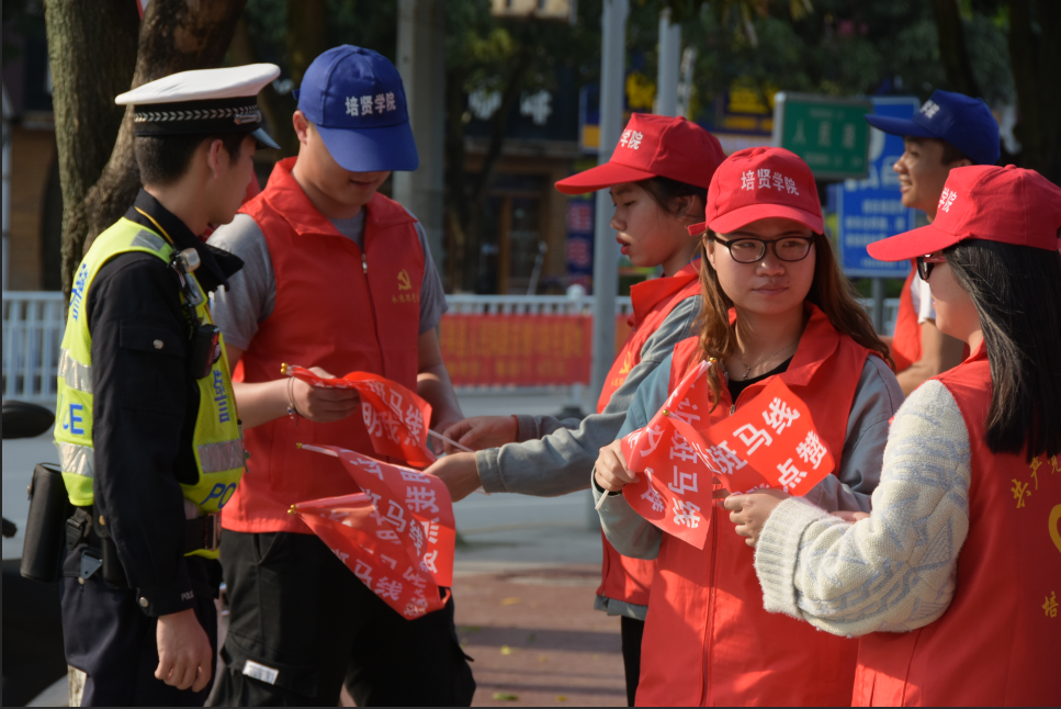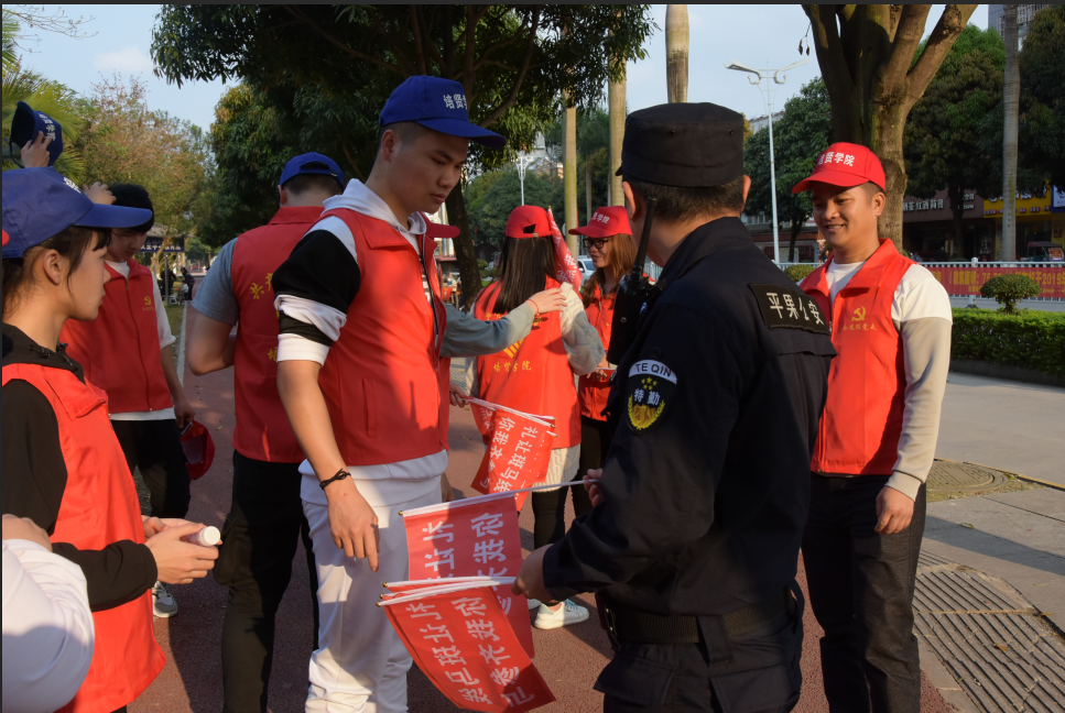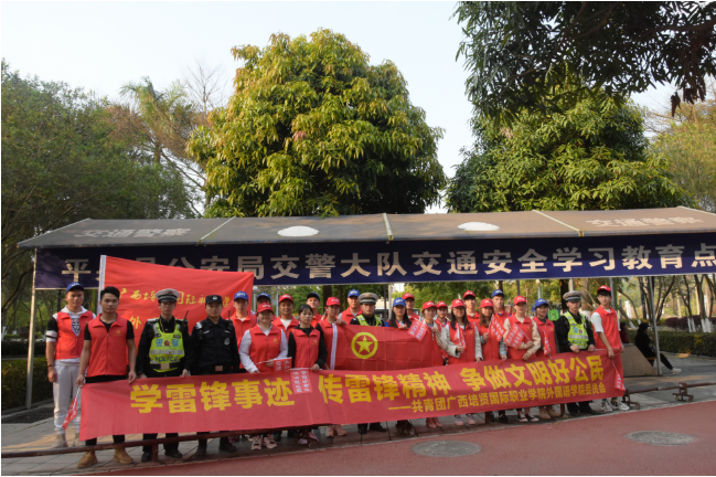 为贯彻落实习近平新时代中国特色社会主义思想和中共十九大精神,营造学雷锋志愿服务气氛🕉,培育和践行社会主义核心价值观🤔,共同营造文明和谐的社会环境🏛,共青团广西彩神国际职业学院外国语学院委员会的张世堂老师带领共青团外国语学院学生会的成员,和平果县交警一起👎🏿,于2019年3月20日在平果文化广场两边的红绿灯路口开展了文明交通活动。