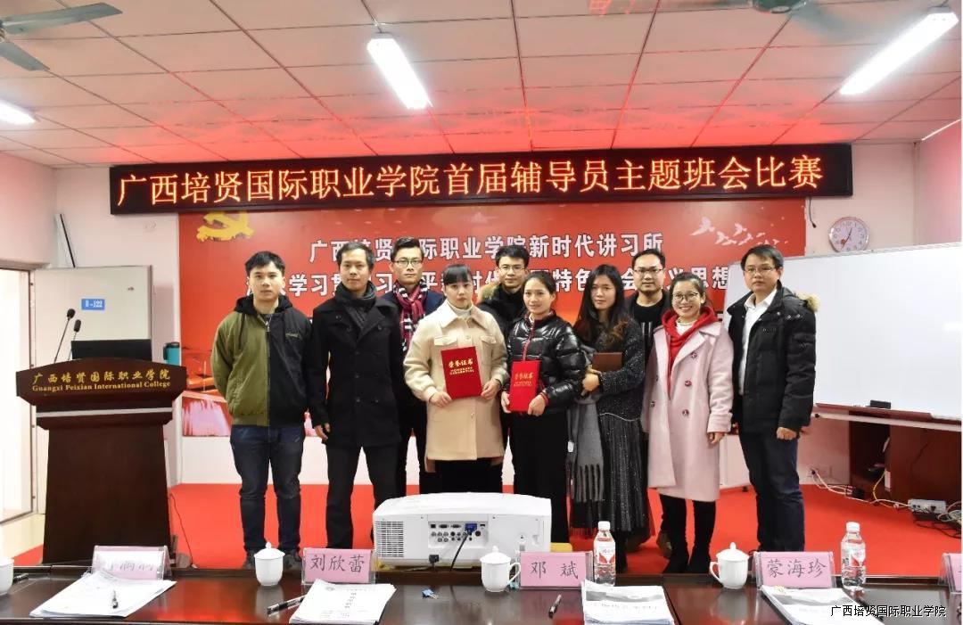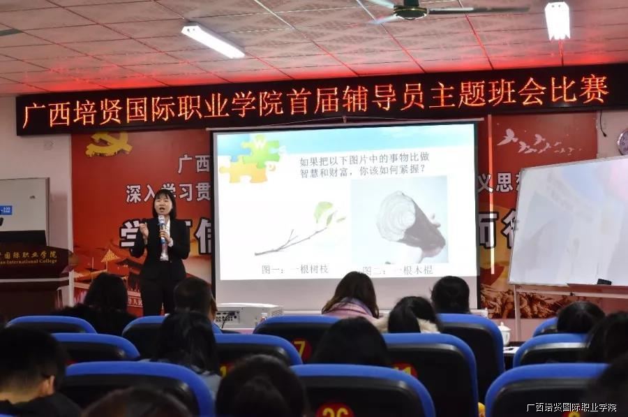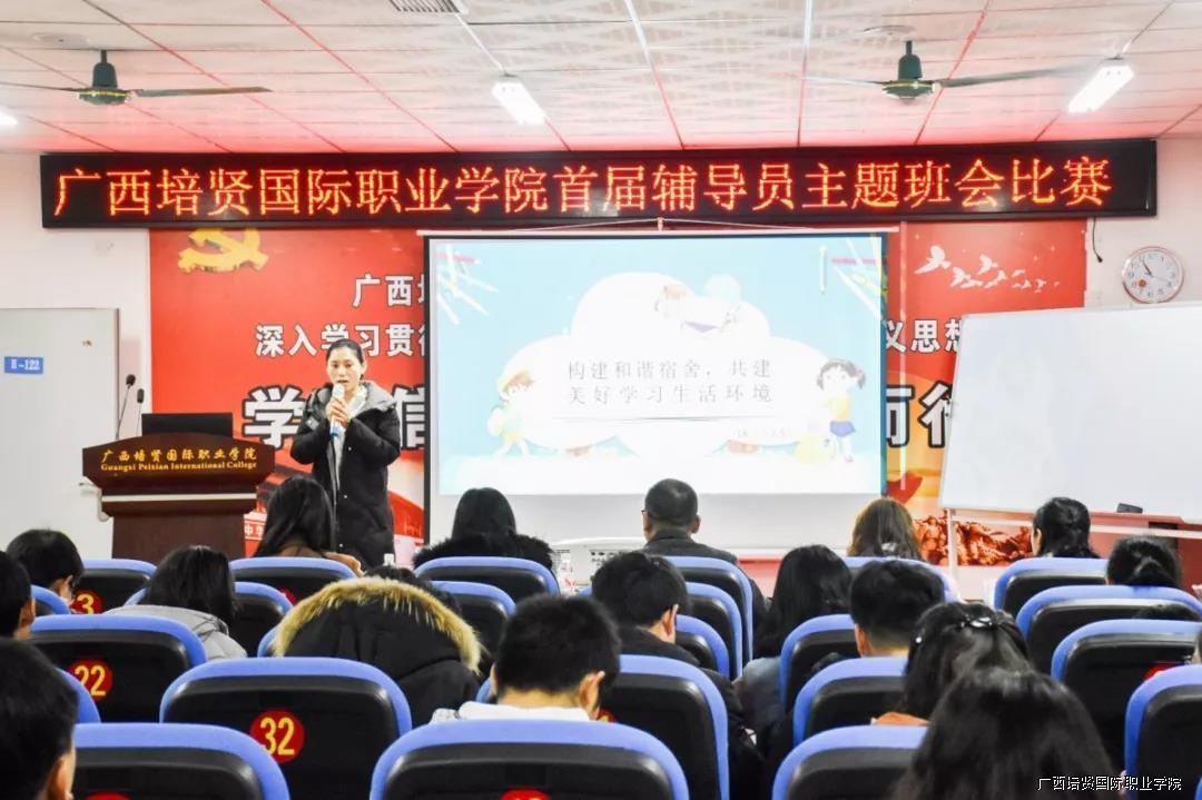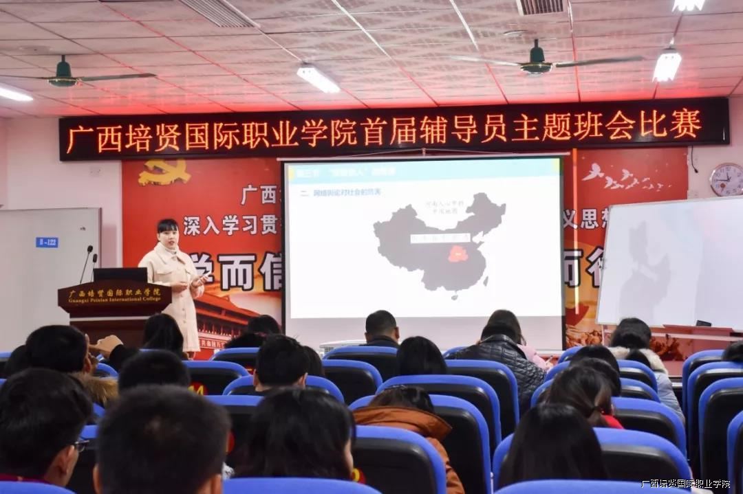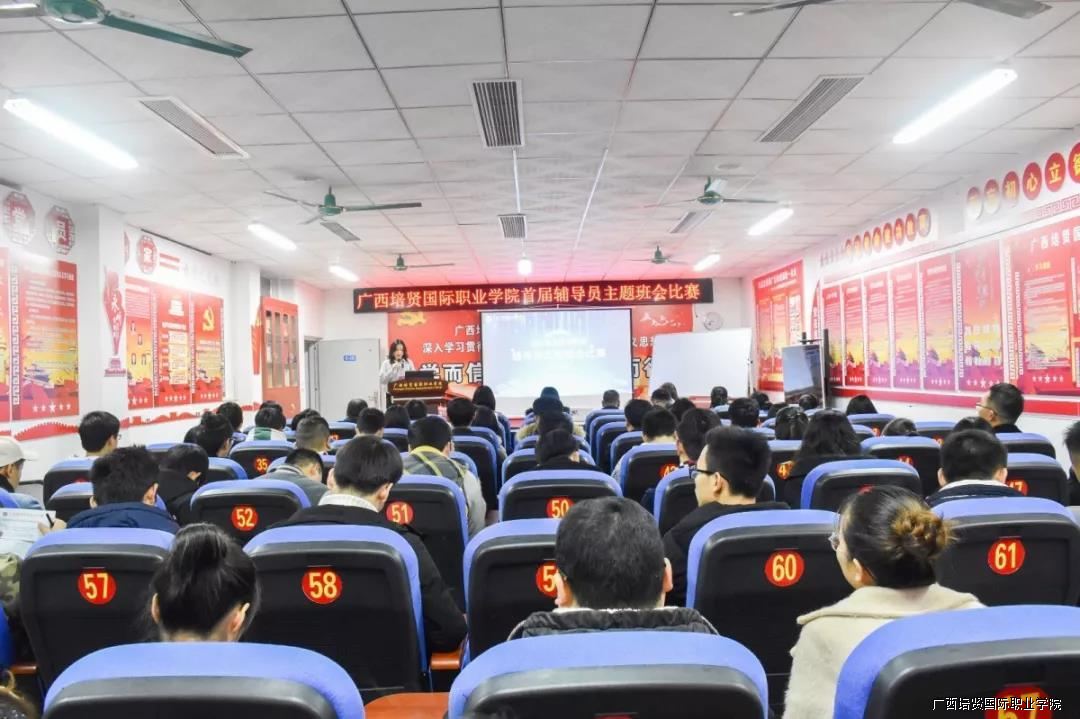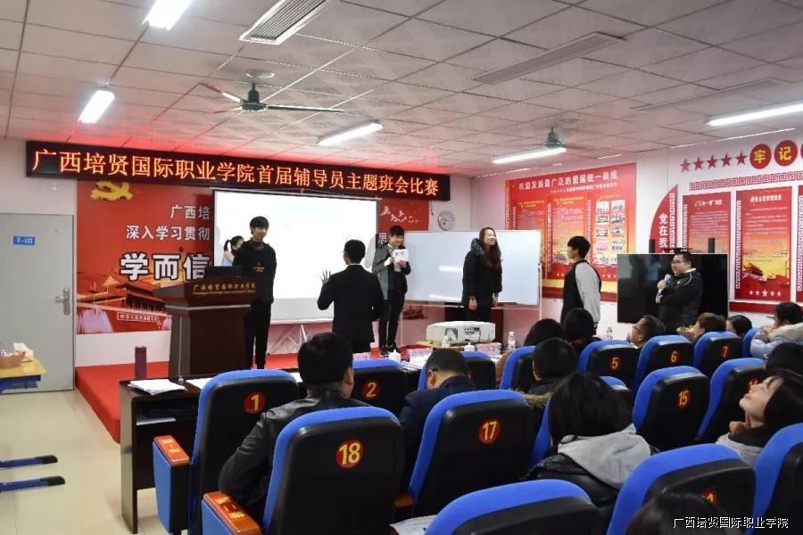 为了贯彻落实《普通高等学校辅导员队伍建设规定》和《高等学校辅导员职业能力标准》的文件精神🔈,进一步提升辅导员的思想素质、职业技能和工作水平,2019年1月21日我校在崔琦教学楼122会议室举办首届辅导员主题班会比赛。校领导副校长黄勇学🦪、于灏洋🌋、陆秋利、二级学院领导到场观摩🚵🏼♀️、指导比赛👙。学工处🏊🏼、团委、思政部及全体辅导员老师到场观摩学习。同时为了体现比赛的公开、公平🤌🏿、公正原则,特邀南宁学院等5位兄弟院校曾获得广西高校辅导员素质能力大赛优秀辅导员来担任本次比赛评委👩🏻🦳。