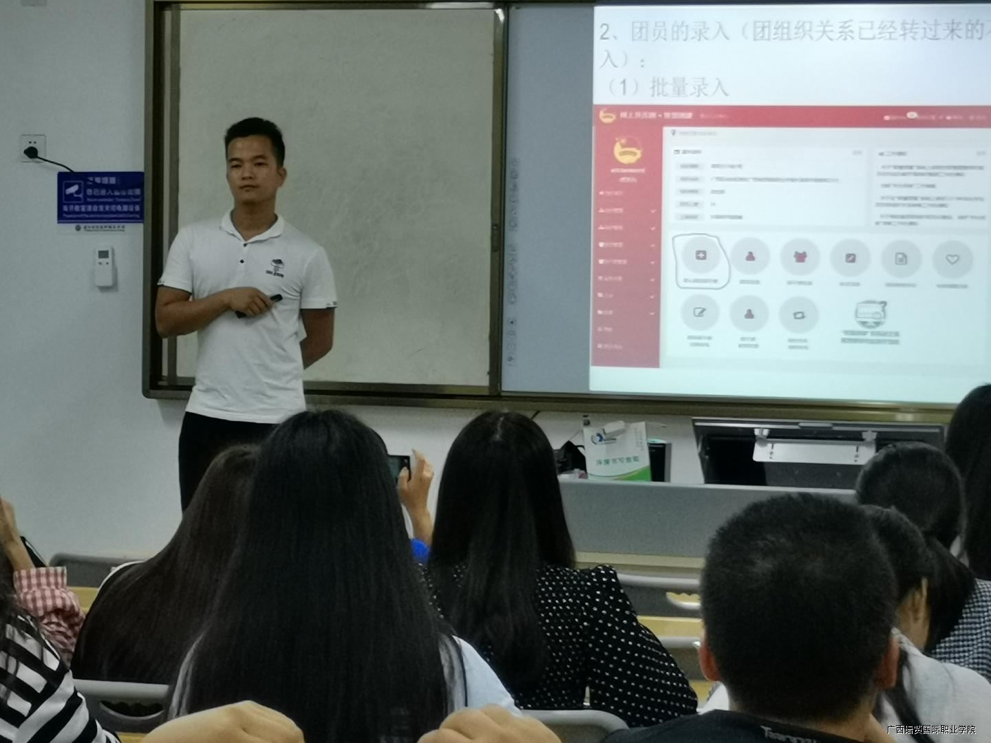 第一,共青团广西彩神国际职业学院外国语学院委员会的张世堂老师对一般团员的自行登录系统的方法和团组织关系转接的操作流程做了详细说明。