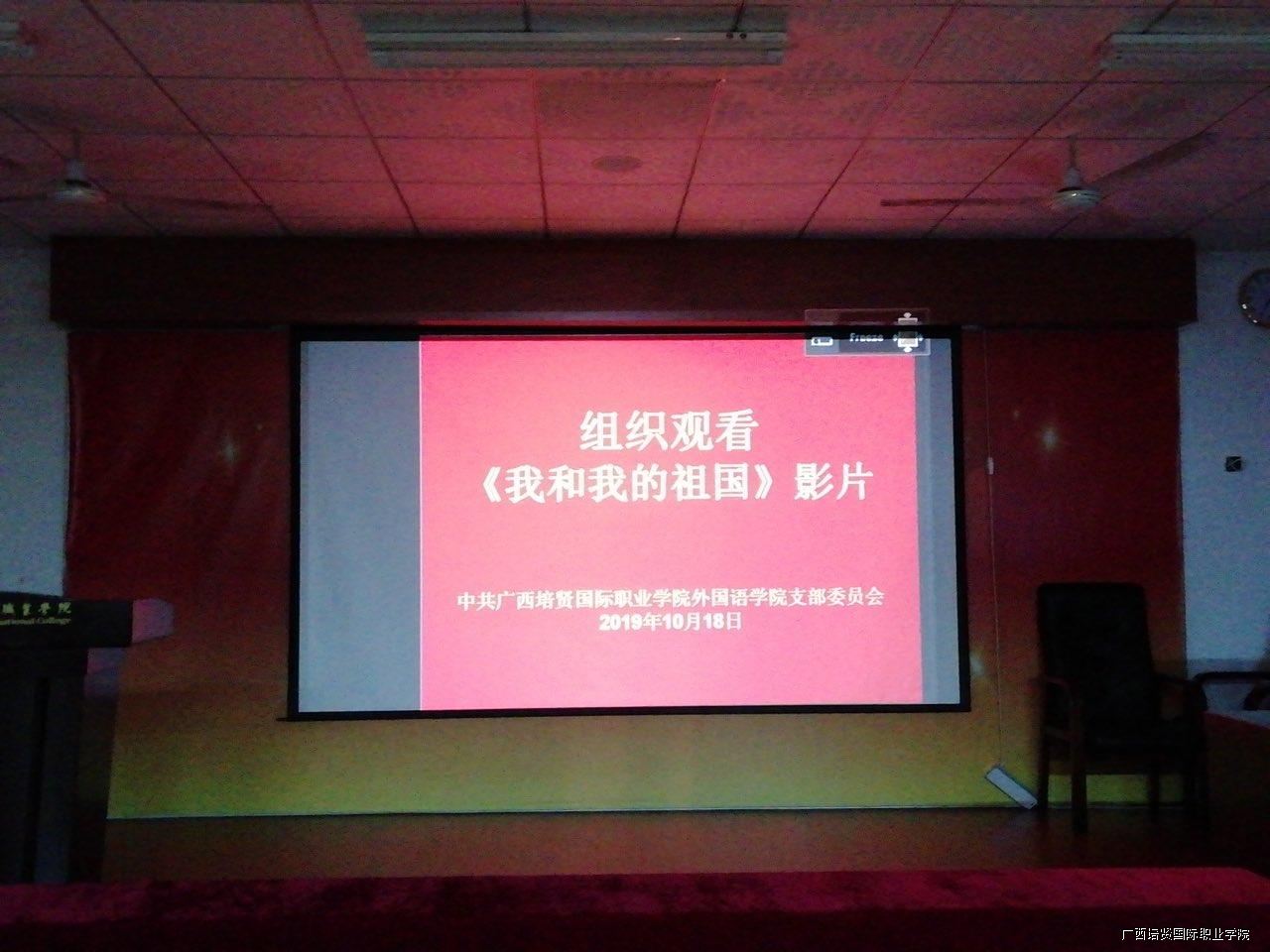 为庆祝中华人民共和国成立七十周年,深入开展“不忘初心🦴、牢记使命”主题教育,深化广大教师和学生的爱国主义和工作热情,外国语学院支部委员会组织全体党员和积极分子统一观看电影《我和我的祖国》🏄🏼。