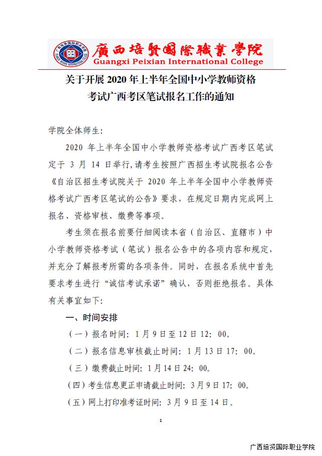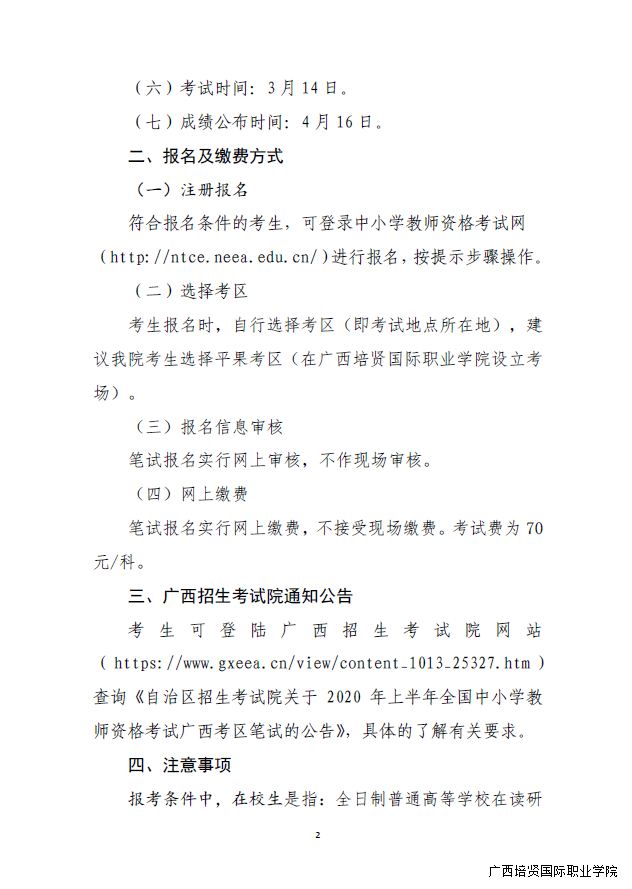 关于开展2020年上半年全国中小学教师资格考试广西区笔试报名工作的通知