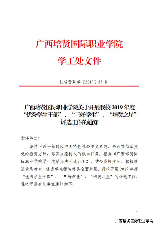 广西彩神国际职业学院关于开展我校2019年度“优秀学生干部”、“三好学生”☂️、“彩神之星”评选工作的通知