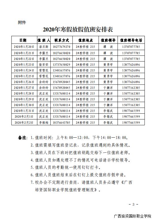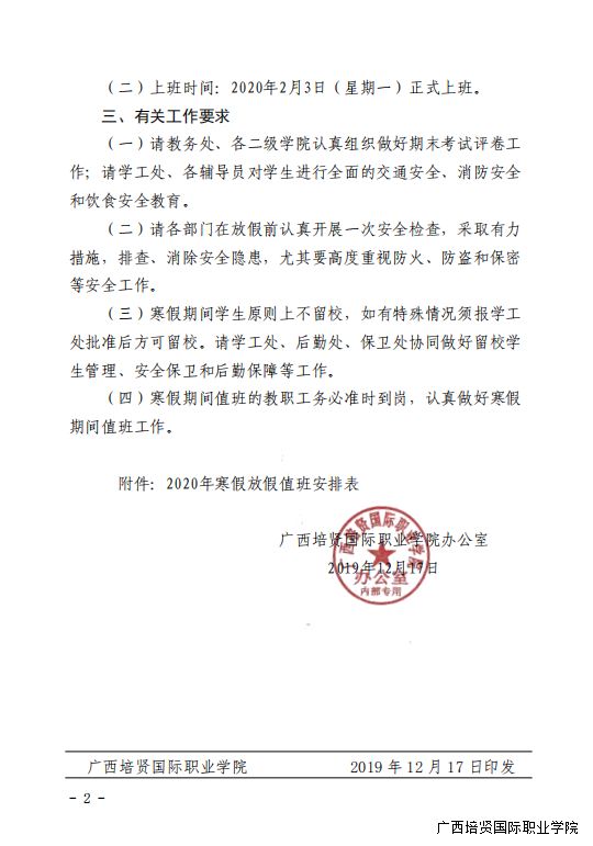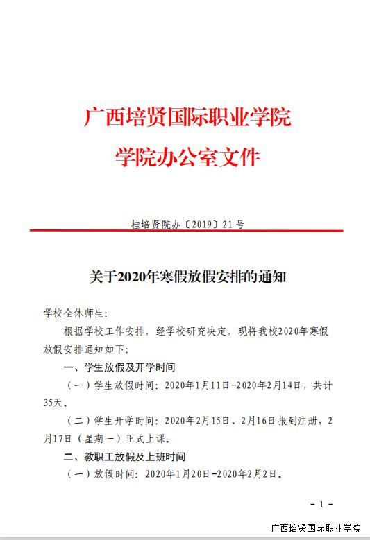 1. 关于2020年寒假放假安排的通知