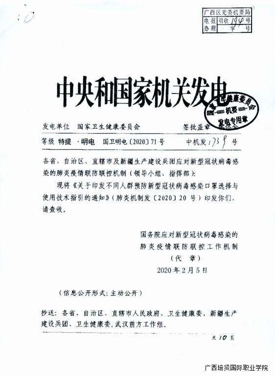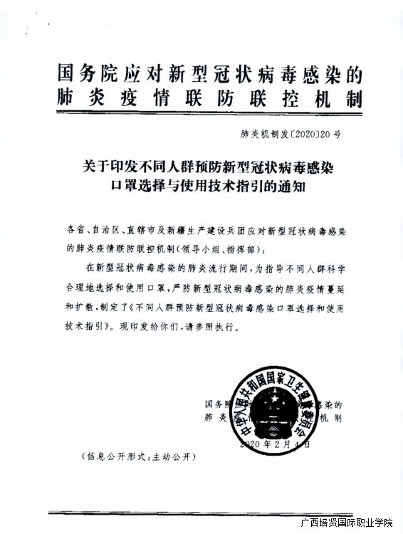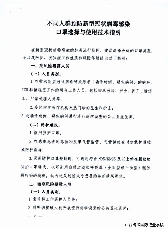 1. 关于印发不同人群预防新型冠状病毒感染 口罩选择与使用技术指引的通知