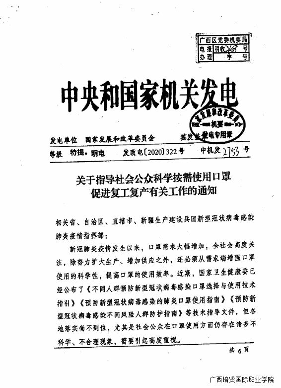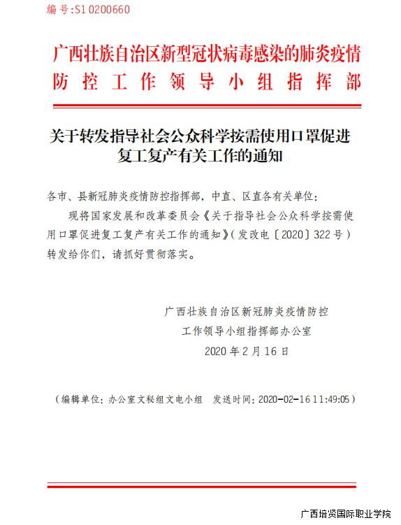 1. 关于转发指导社会公众科学按需使用口罩促进复工复产有关工作的通知